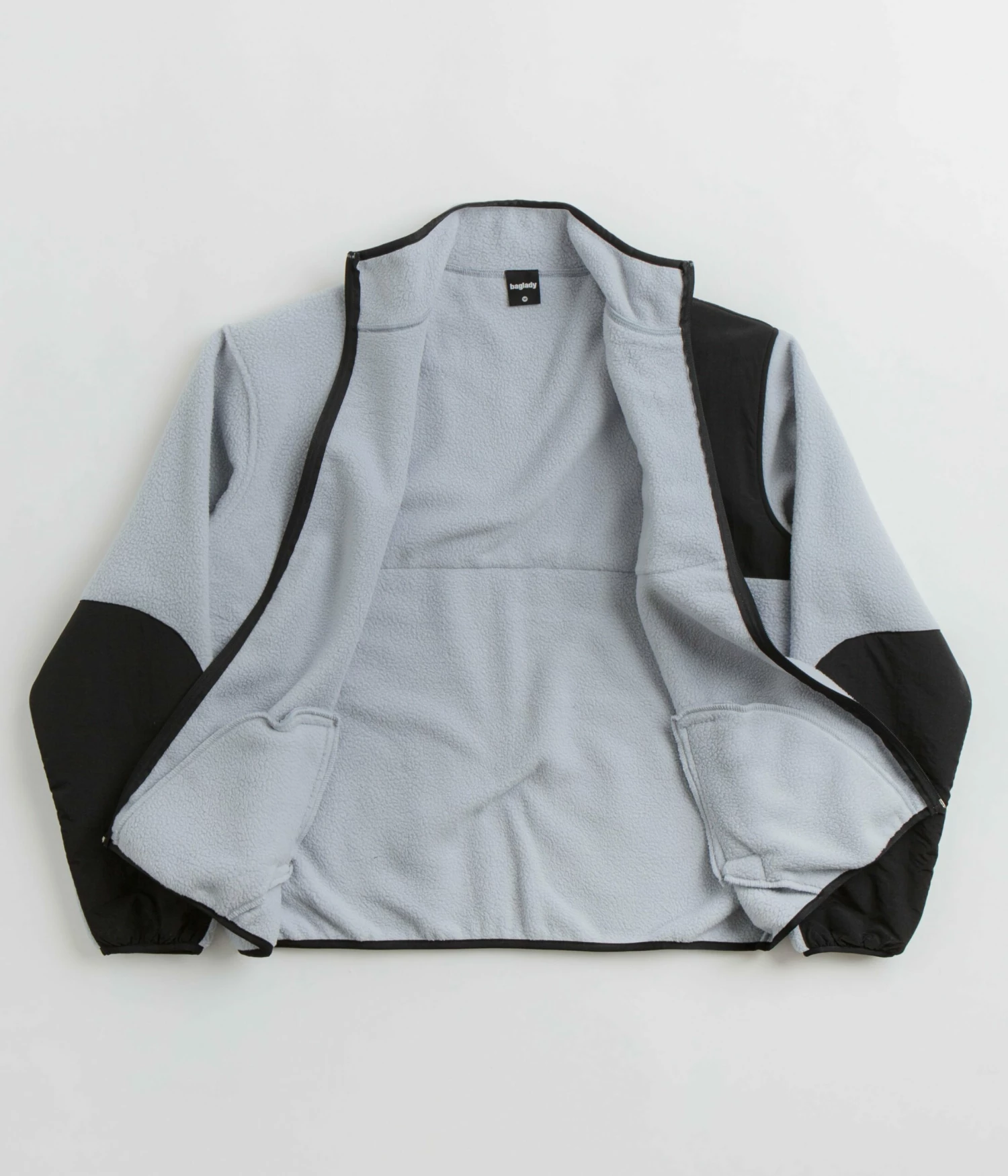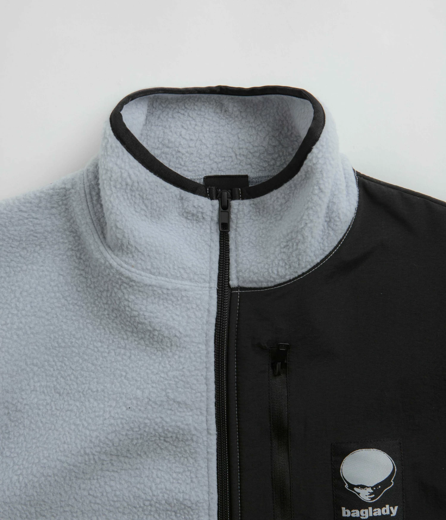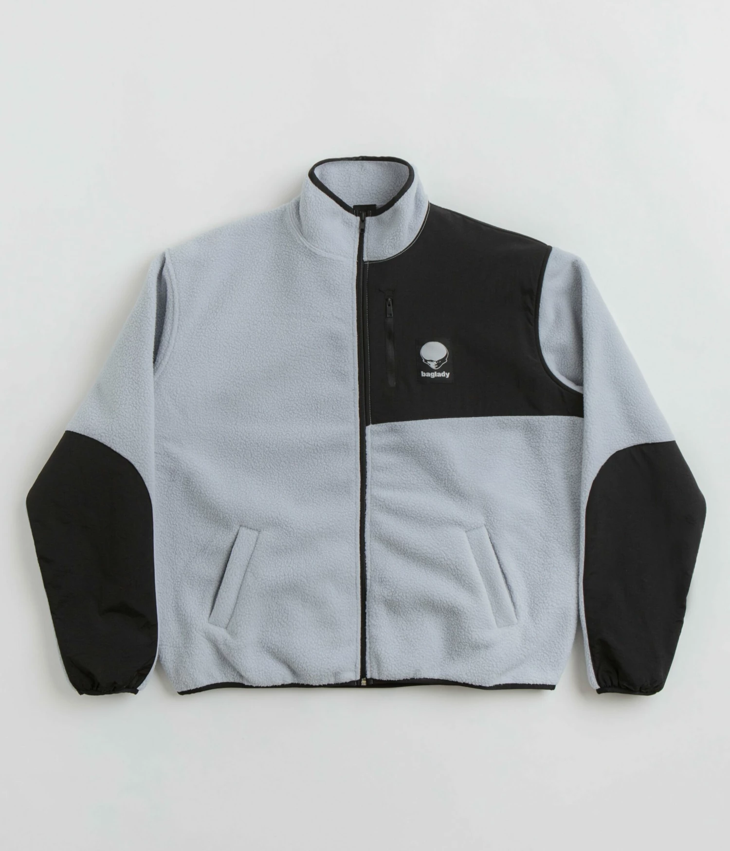 Baglady Zip Up Fleece in Ice Blue. Arriving as part of the brand’s latest release, this regular fitting Baglady fleece is made from Sherpa wool with detailed panelling. Featuring a full length zipper fastening, elasticated cuffs and a woven elastic hem, this blue grey Baglady fleece is finished with two waist pockets, a zippered chest pocket and with woven flag label branding.
