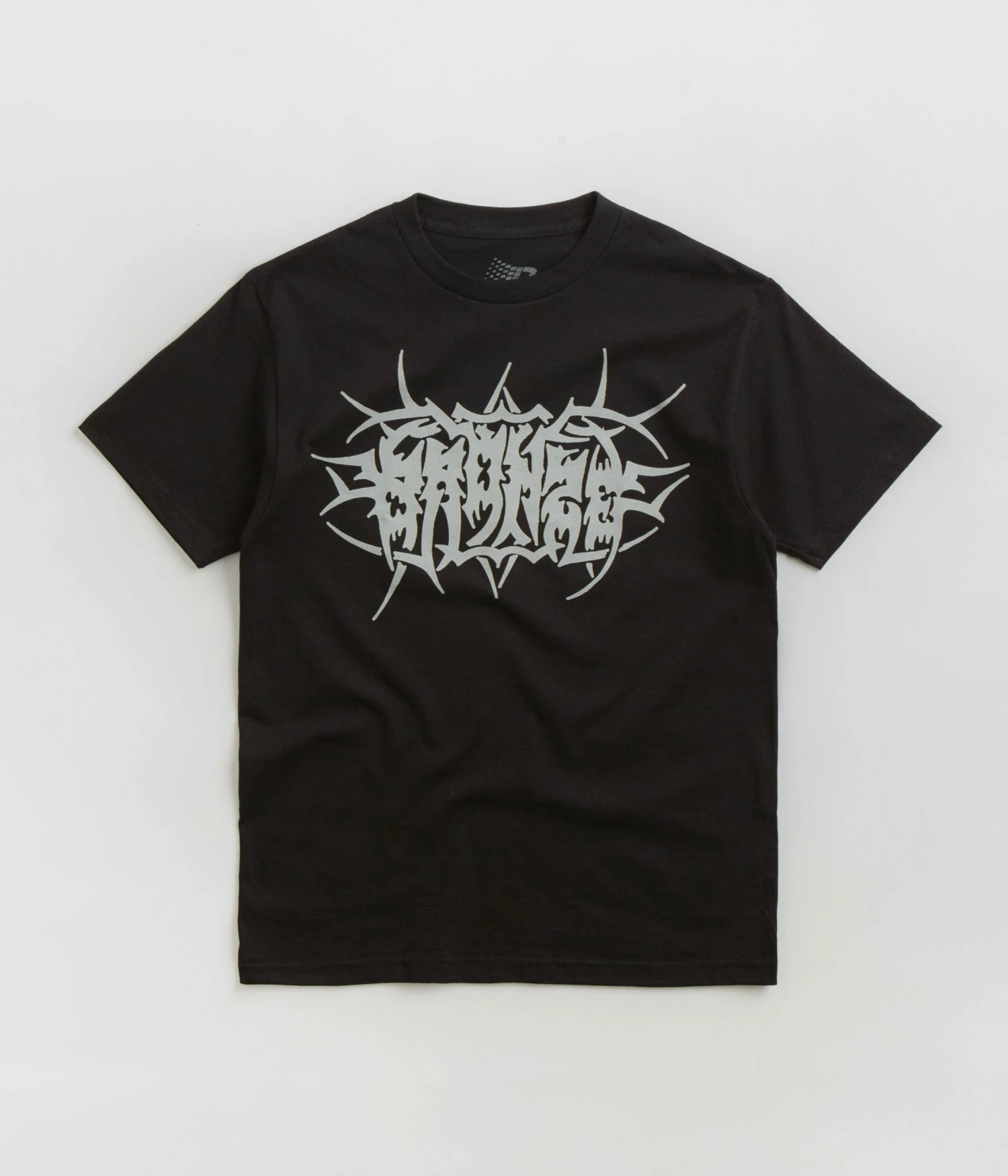 Bronze 56K Tribal T-Shirt in Black. Tailored to a regular fitting from 100% cotton, this new season Bronze 56K t-shirt is designed with a flexible rib knit collar and a straight cut hem. Finished in a shade of black with a screen printed centre chest graphic.