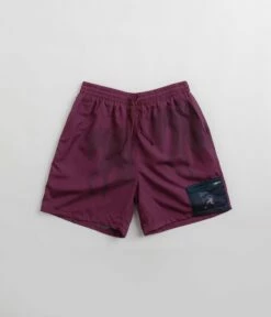 by Parra Short Horse Shorts in Tyrian Purple. Made from 100% polyester with a breathable mesh lining, these regular fitting by Parra shorts are styled with an elasticated drawstring waist. Featuring two front pockets and an additional zippered stash pocket, these purple by Parra shorts are finished with printed graphics and printed logos.
