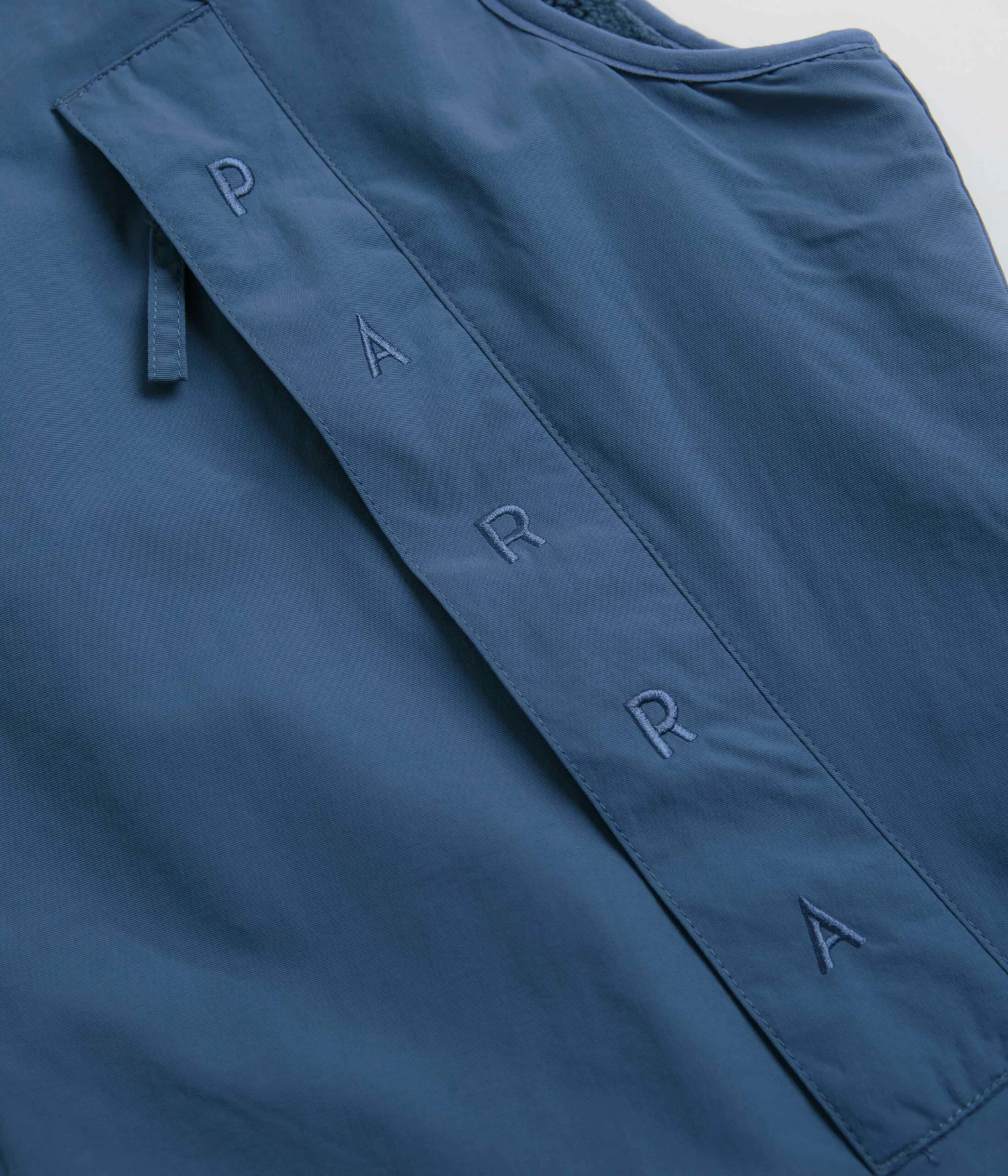 by Parra Trees In Wind Reversible Vest in Blue. A two-in-one design tailored to a regular fitting, this reversible by Parra vest is styled with both a nylon and a fleece side. Featuring a high-neck collar, a full length zipper fastening and a high-low hem, this blue by Parra vest is finished with two chest pockets, a plain weave chest pocket across the patchwork fleece side and with embroidered logo branding.
