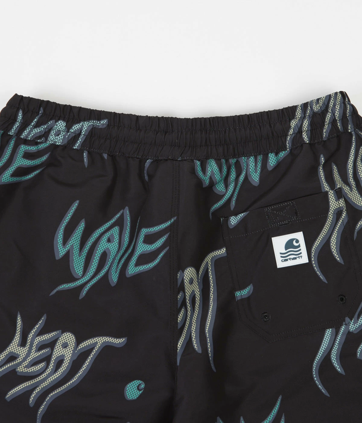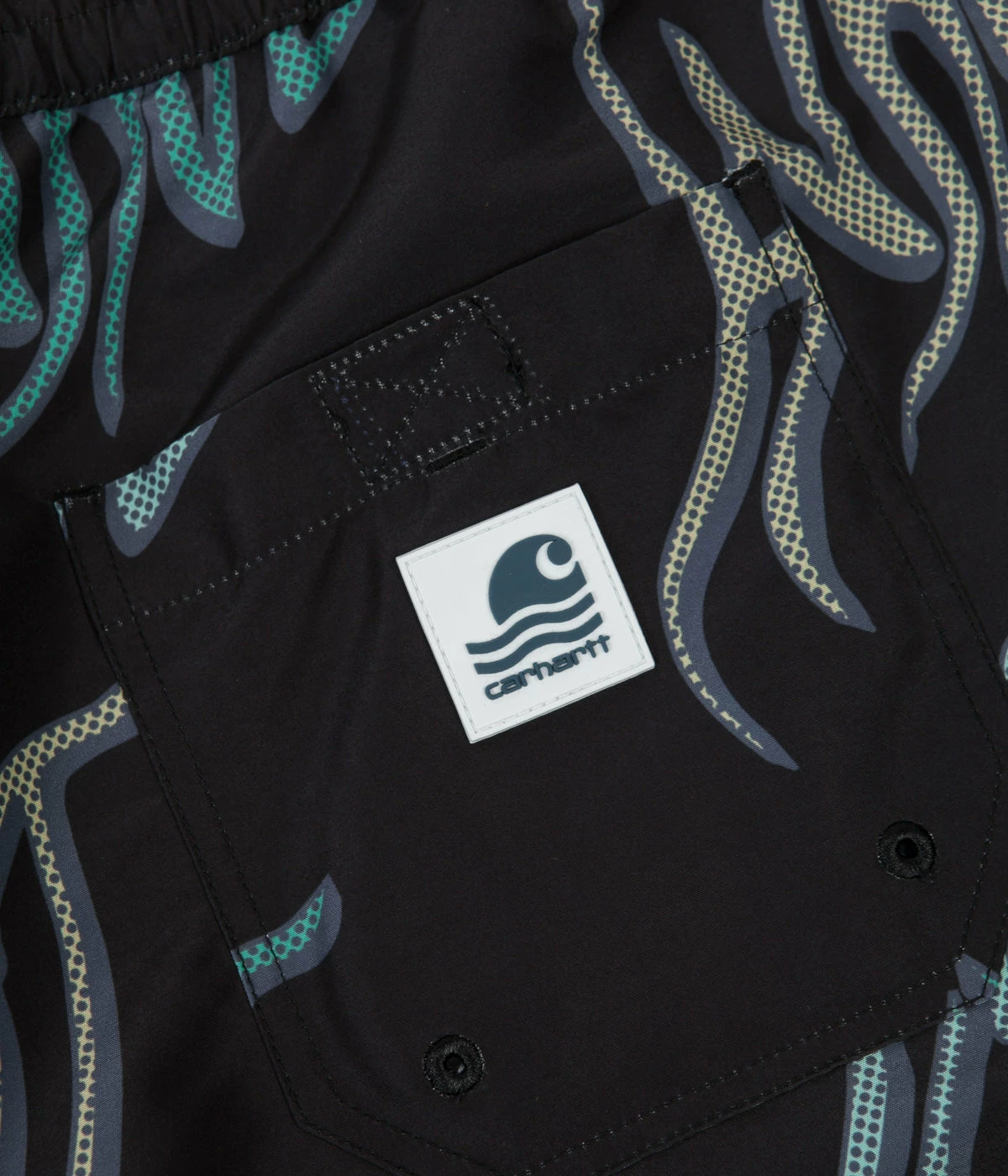 Seen here in a striking black and blue colourway, these Drift Swim Trunks from Carhartt arrive as a new-season staple from the brand’s latest SS21 collection. Designed to complement any water-based activity with ease thanks to their quick-drying composure and lightweight profile, these 100% nylon shorts boast a durable 4.1oz fabric finish, whilst their above-knee fitting pairs neatly with the elasticated waist, colour-matched drawcord trims and the pre-fitted inner trunk. Two side-seam pockets can be found just below the waist, whilst a single rear-facing patch pocket is equipped with an inbuilt key-holder for added practicality. Across the entirety of the design, a repeated ‘Heat Wave’ print decal is displayed in waving shades of brushed teal and green, whilst its contemporary character remains forever loyal to the brand’s fun-loving persona and ode to premium-quality craftsmanship.