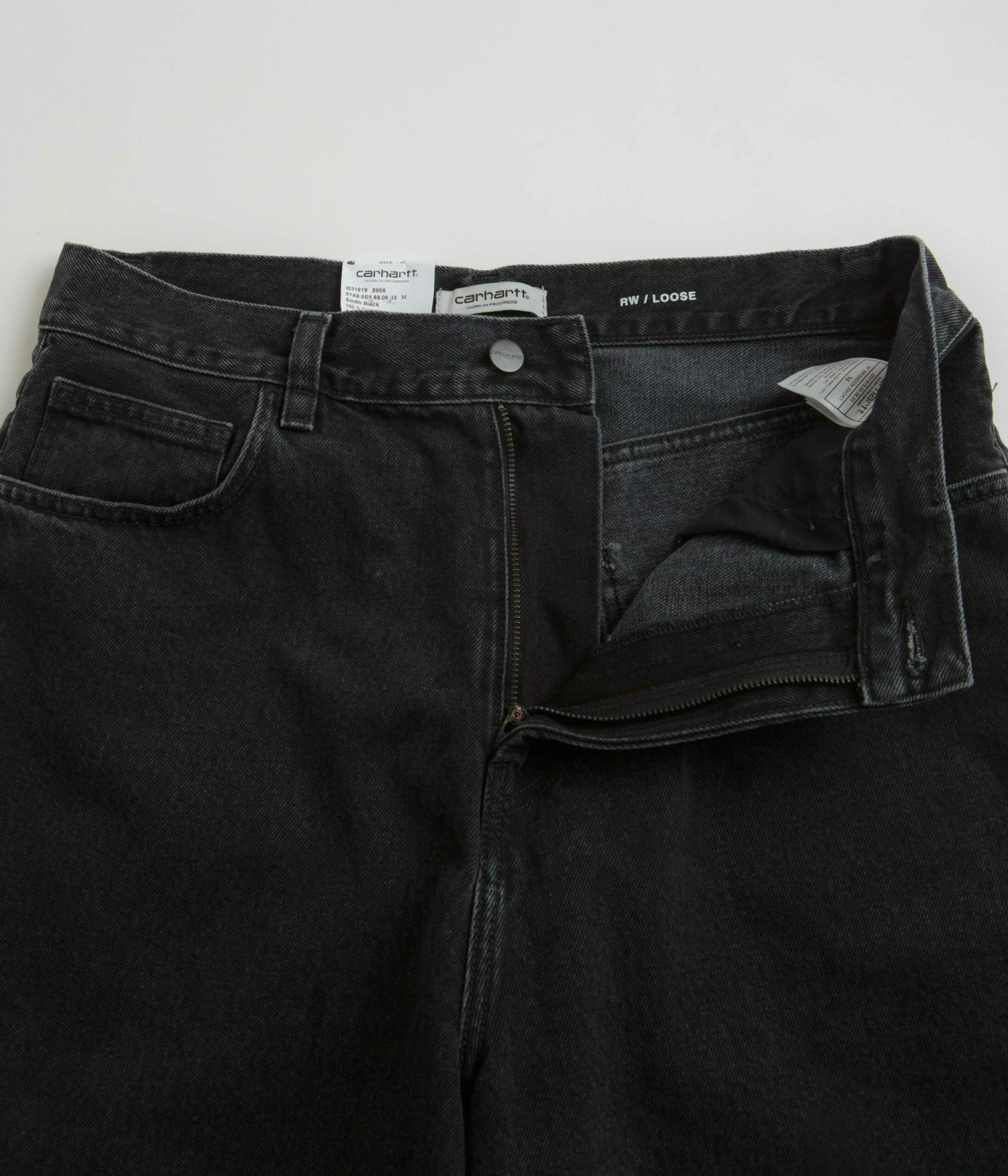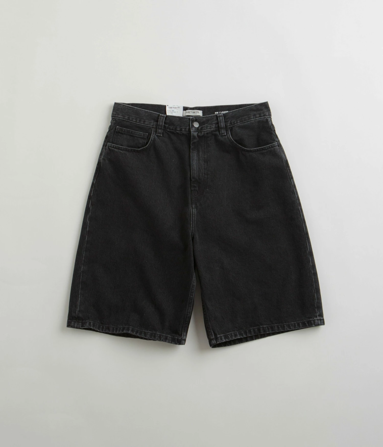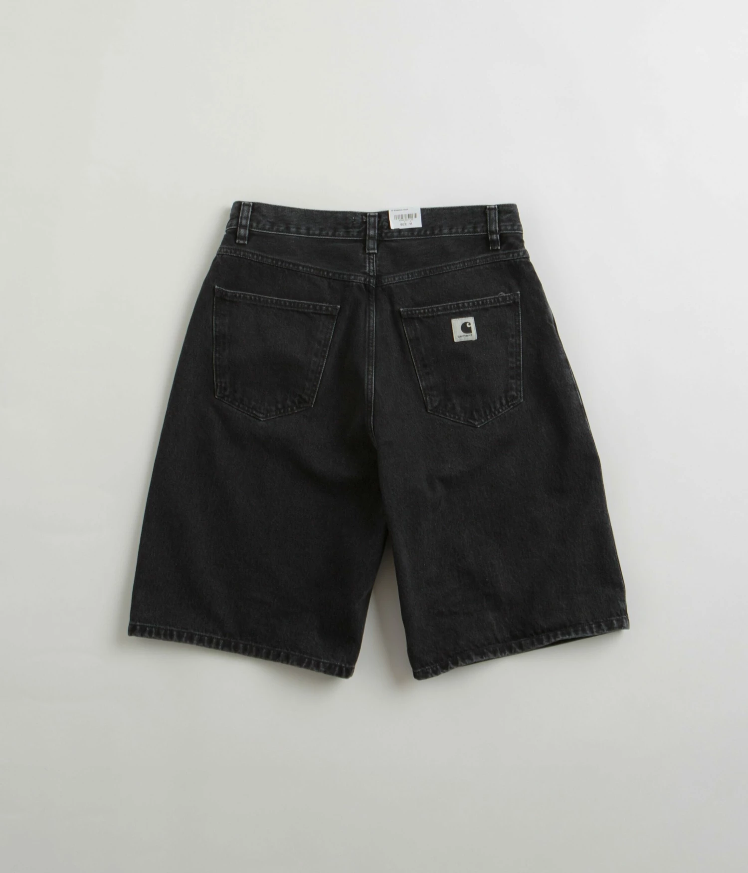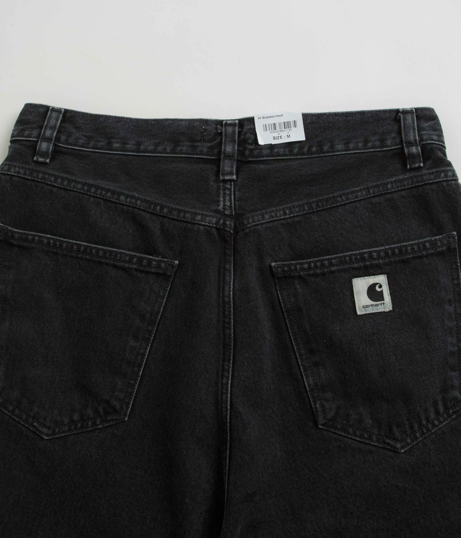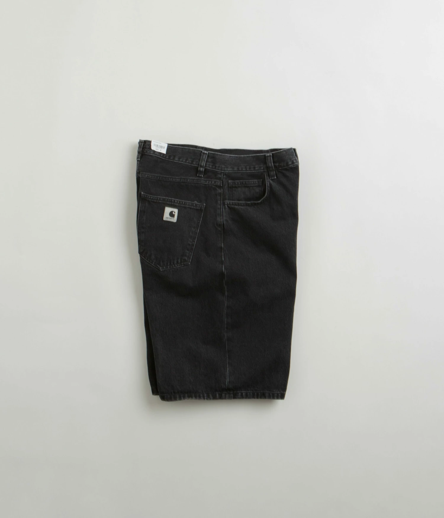 Carhartt Womens Brandon Shorts in Black Stone Washed. Tailored to a loose fitting, these Carhartt shorts are made from 100% cotton ‘Smith’ denim with a single button secured zipper fly. Finished in a shade of stone washed black, these Carhartt womens shorts also feature two front pockets, two rear pockets and with woven flag label branding.