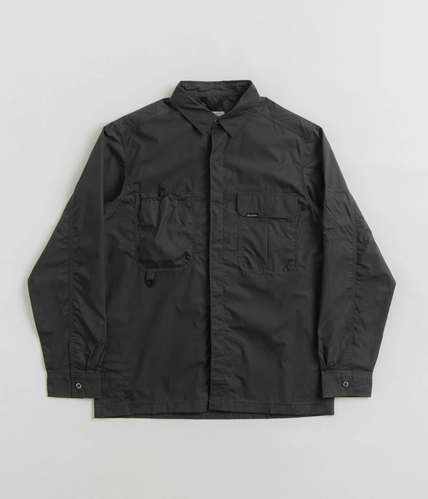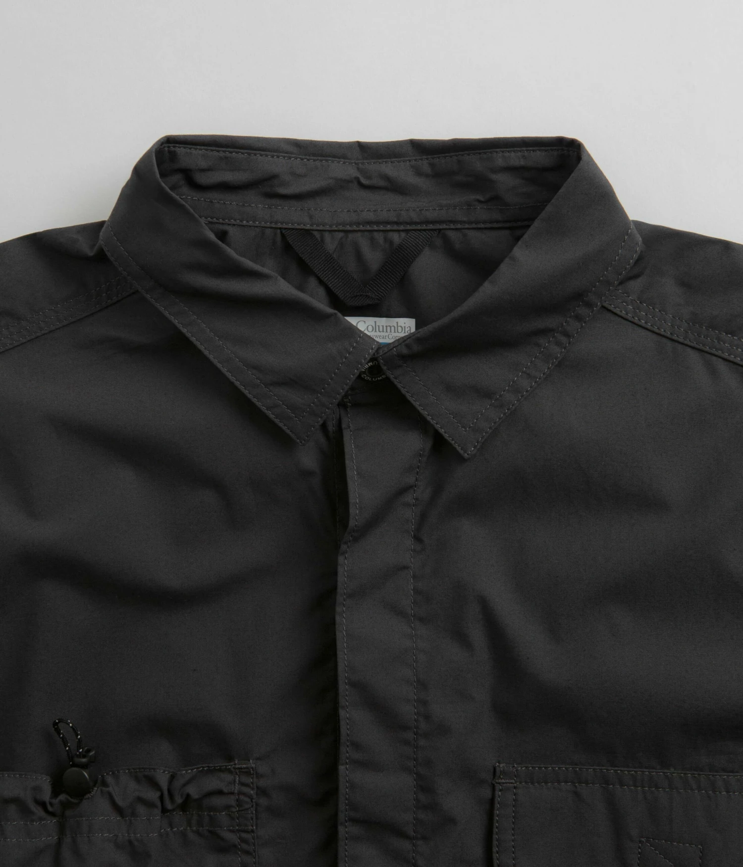 Columbia Landroamer Cargo Shirt in Shark. Made from lightweight cotton-poplin, this Columbia shirt is tailored to a regular fitting with a full length button fastening. Featuring adjustable cuffs and a reinforced hem, this grey Columbia shirt is finished with two chest pockets, woven flag label branding and with a woven D-Ring attachment point.