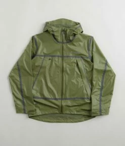 Columbia OutDry Extreme Wyldwood Shell Jacket in Canteen. Part of the brand’s Titanium collection, this regular fitting Columbia jacket is made from 100% recycled polyester with external seam taping and OutDry™ EXTREME waterproof technology. Packable and styled with a full length zipper fastening, a peripheral adjustable hood, adjustable cuffs and a drop-tail hem, this green Columbia jacket is finished with two zippered front pockets, a single inner pocket, reflective details, a D-ring loop and with printed logo branding.