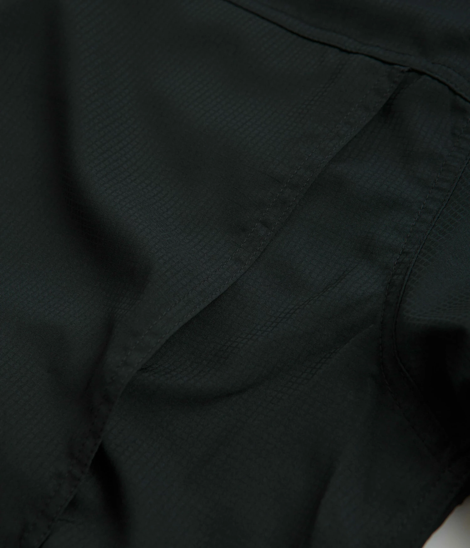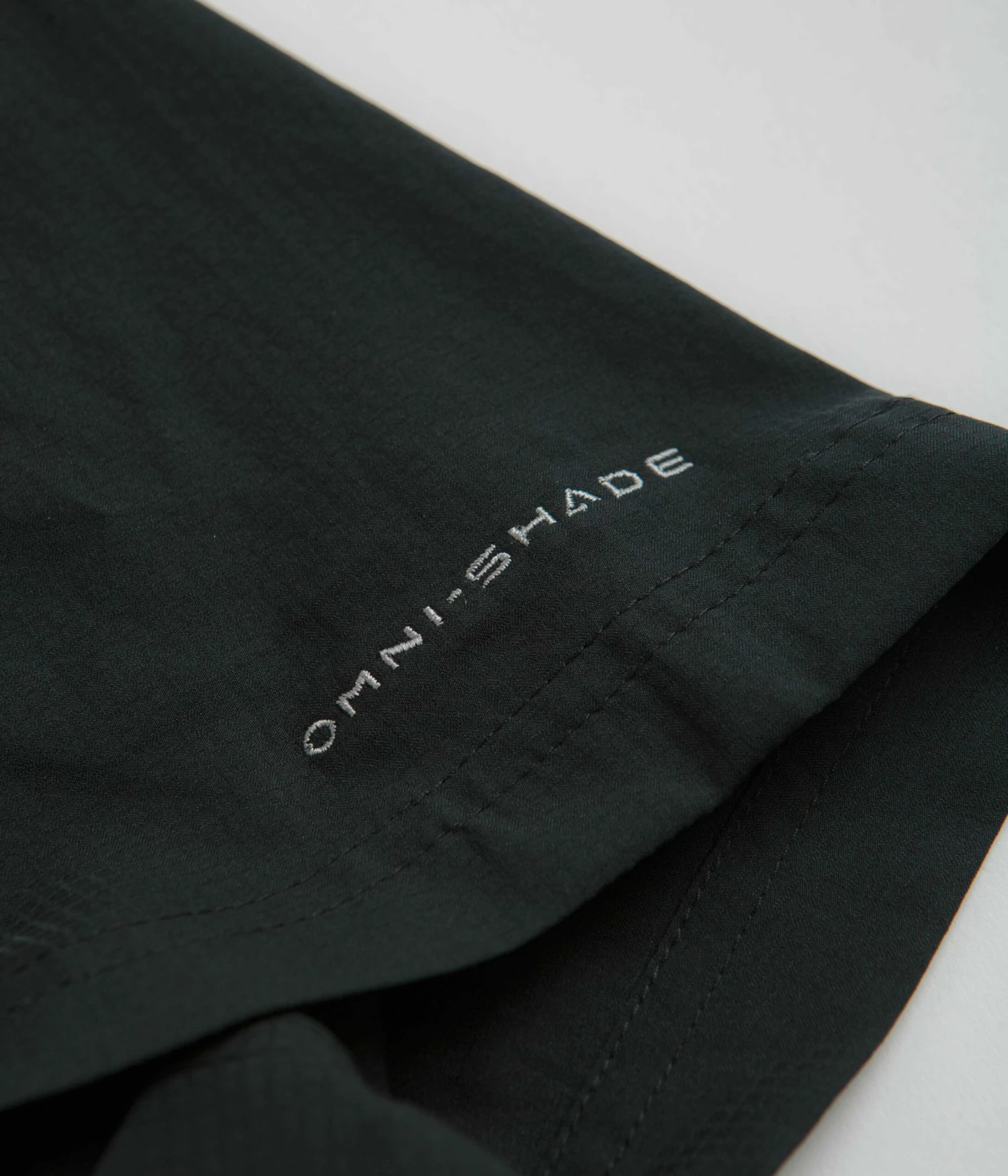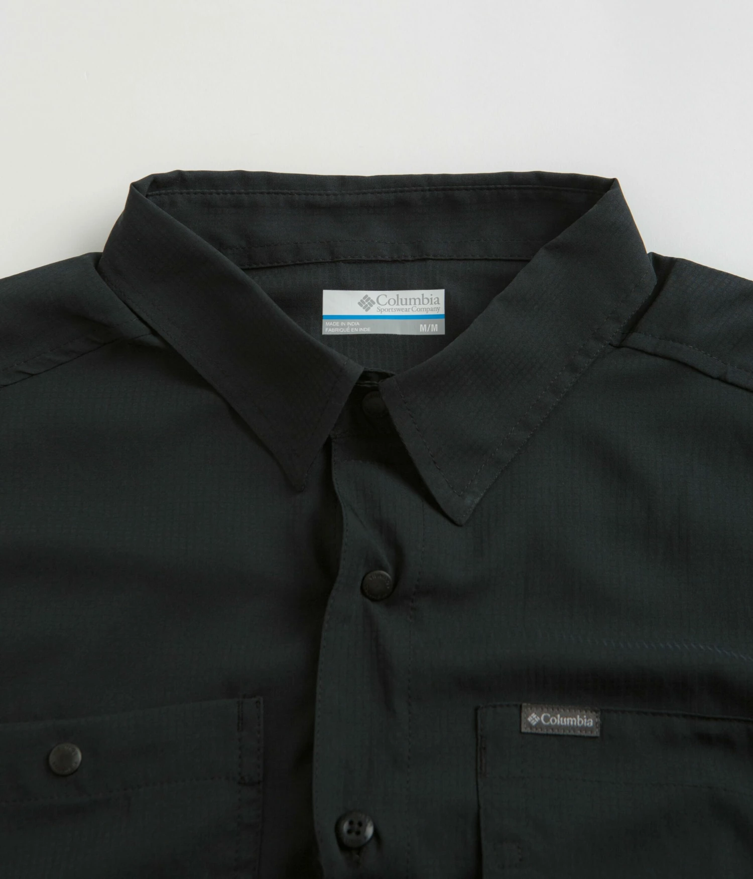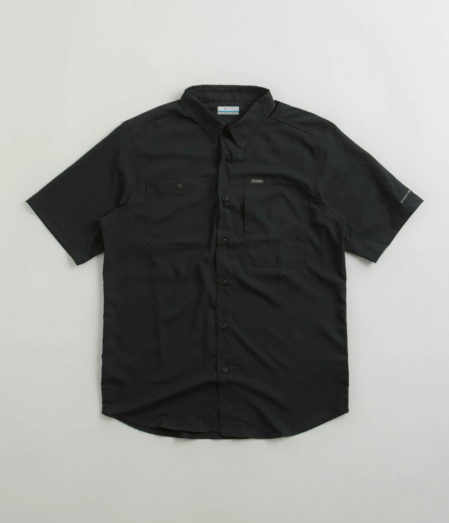 Columbia Silver Ridge Utility Lite Short Sleeve Shirt in Black. Regular fitting and made from 100% recycled polyester, this Columbia shirt is designed with Omni-Shade™ Broad Spectrum UPF 50 sun protection and with Omni-Wick™ technology. Featuring a classic stand collar and a full length button fastening, this black Columbia shirt is finished with a curved hem, a three-point rear ventilation system, chest pockets and with woven flag label detailing.