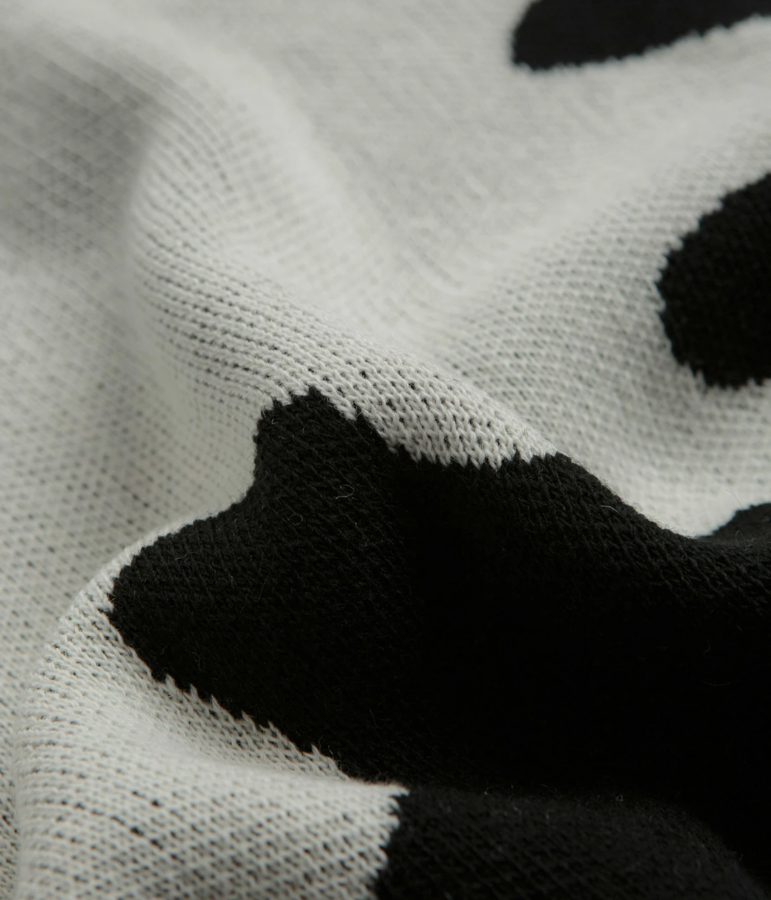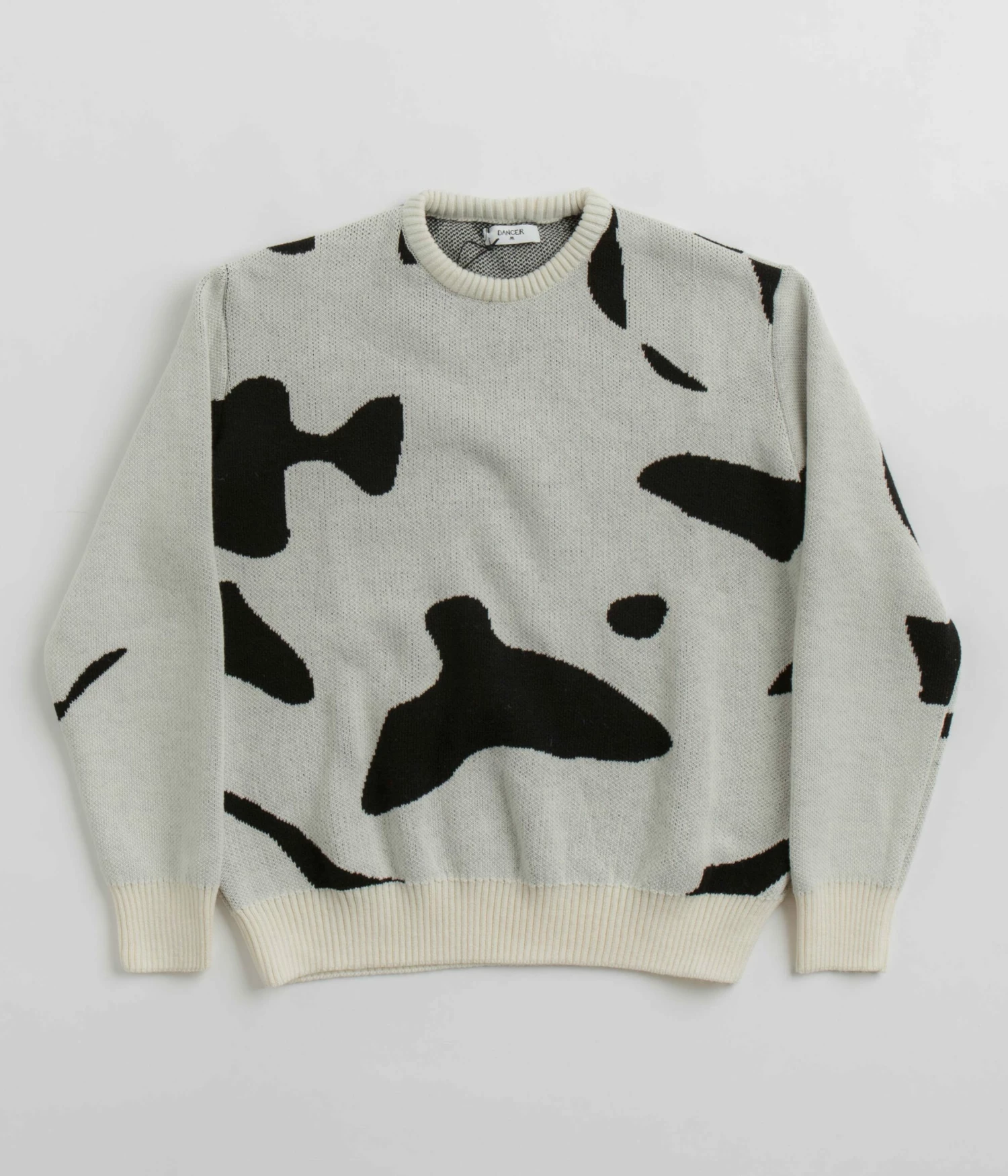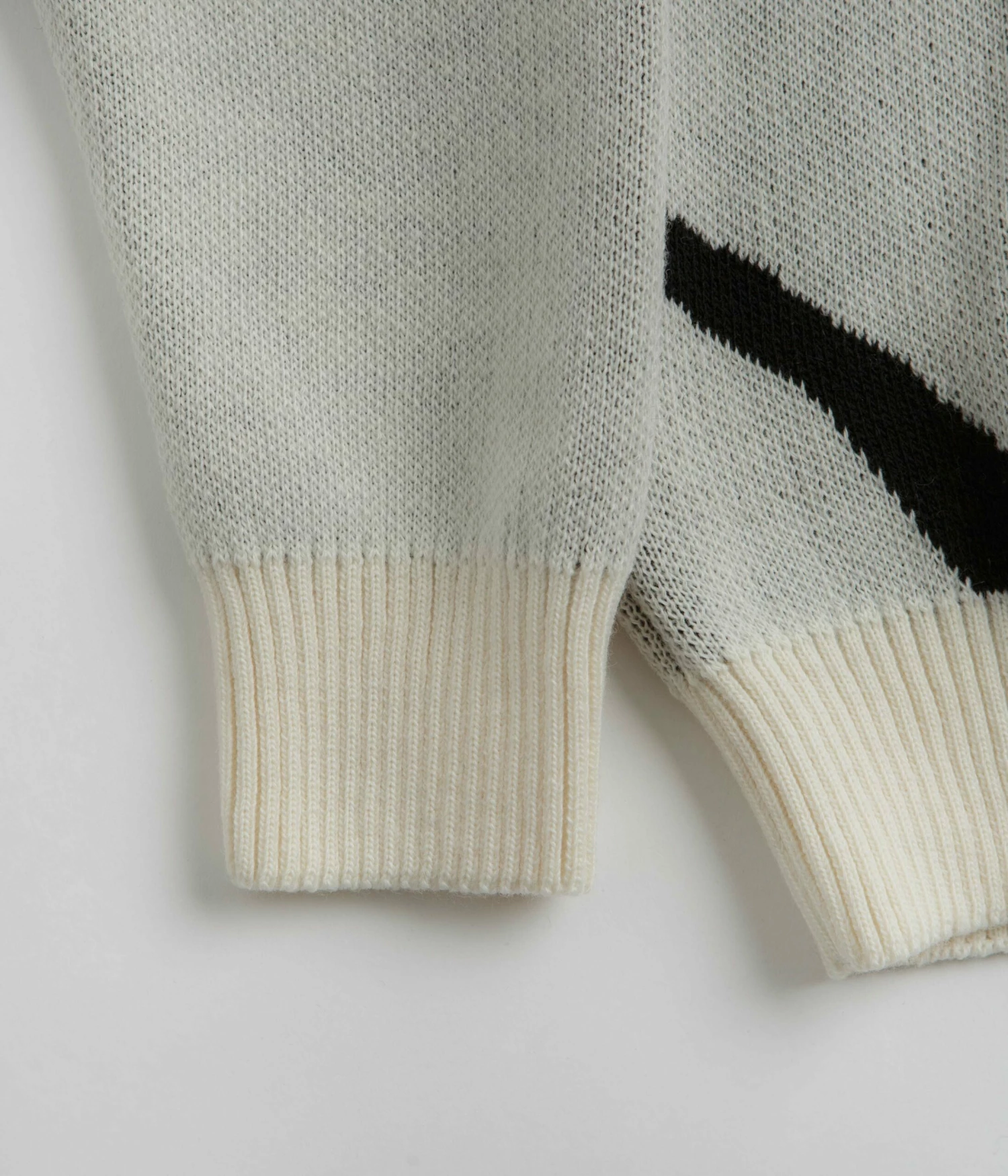 Dancer Mask Knit Sweatshirt in White. Regular fitting and made from a wool-polyester blend, this regular fitting Dancer sweatshirt is styled with an intarsia knit design. Featuring a thick rib collar, this white Dancer sweater is finished with black patches, ribbed cuffs and with a woven elastic hem.