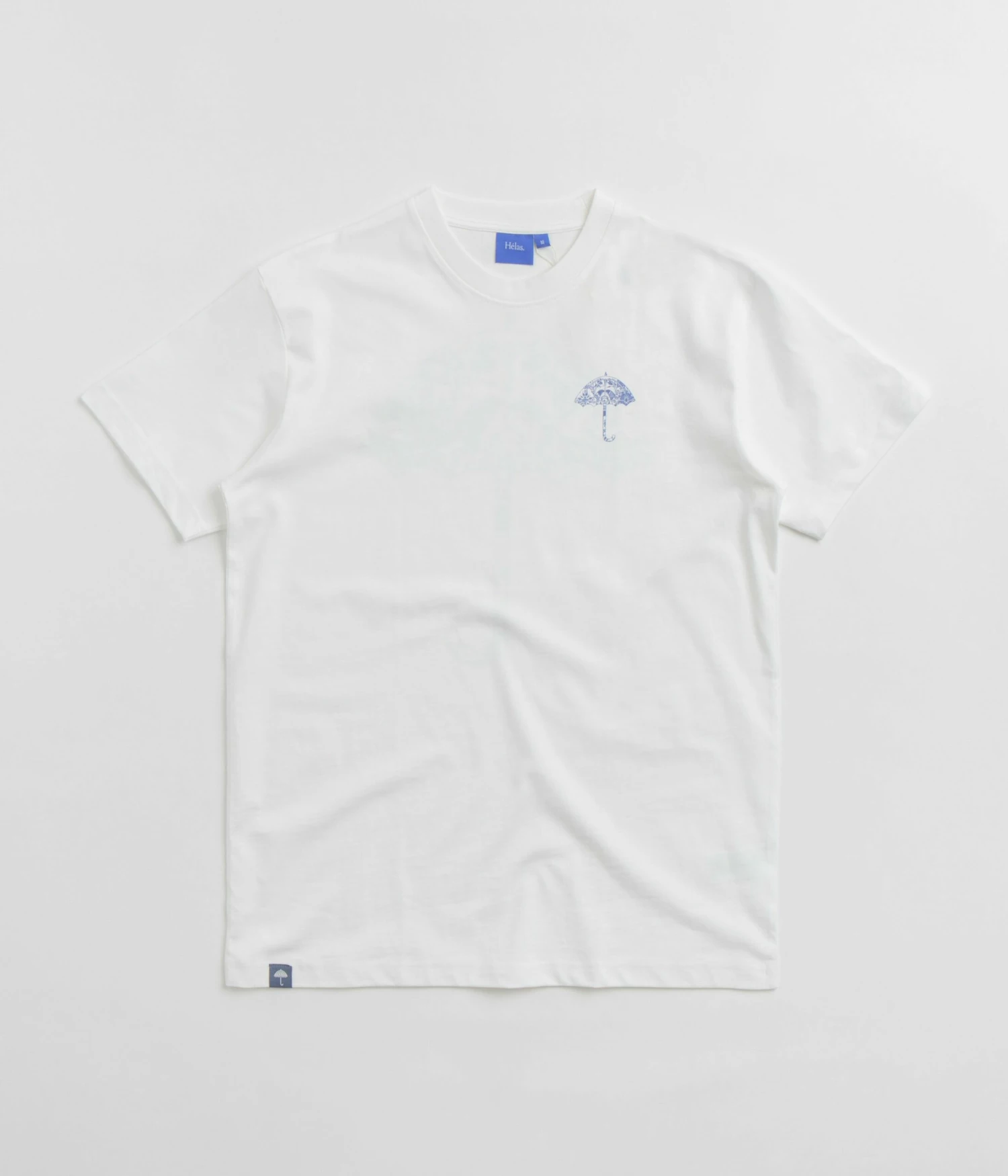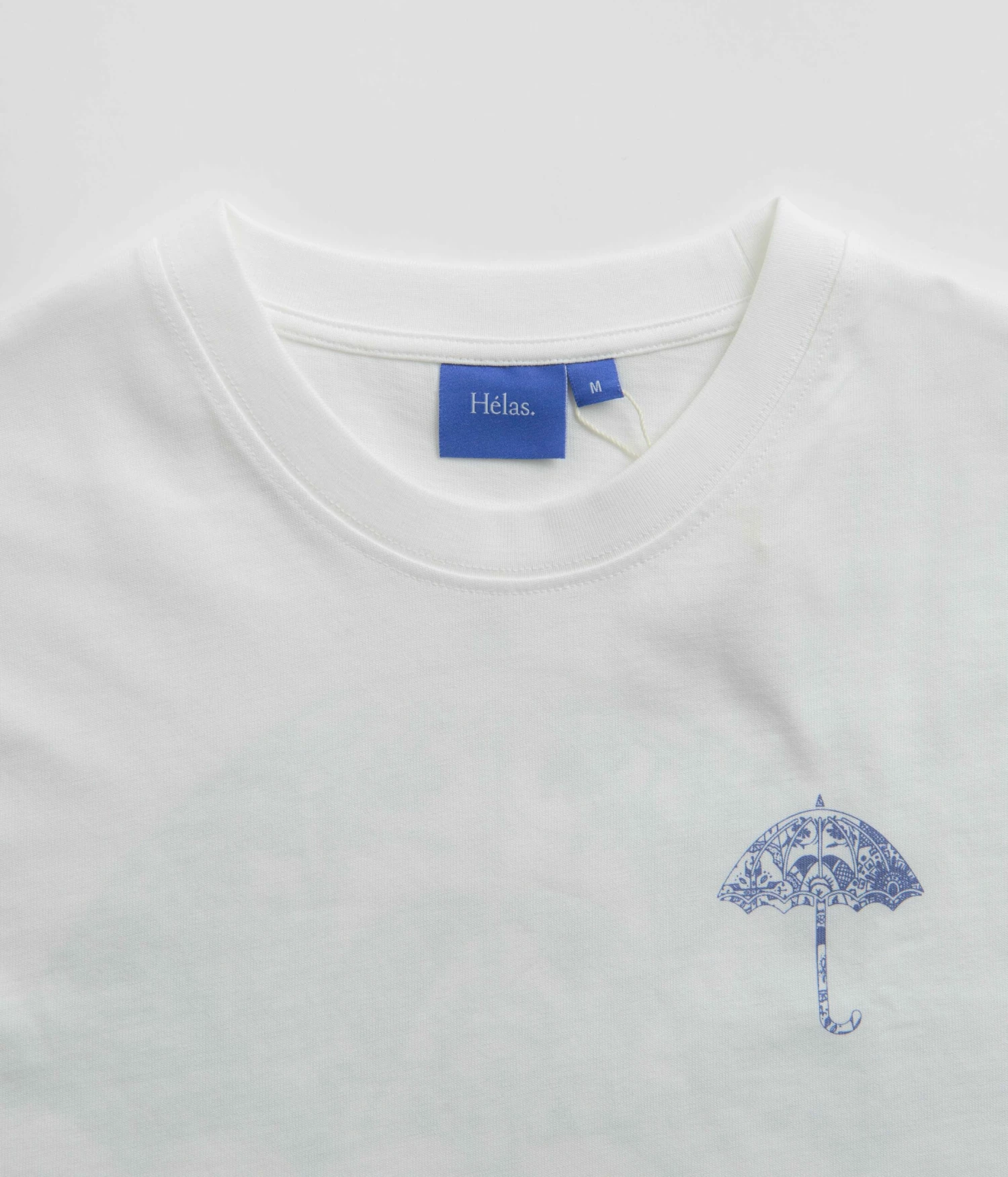 Hélas Henne T-Shirt in White. Part of the brand’s latest release, this regular fitting Hélas t-shirt is made from 100% cotton. Featuring a rib knit collar and a straight cut hem, this white Hélas t-shirt is finished with printed front and rear graphics.=
