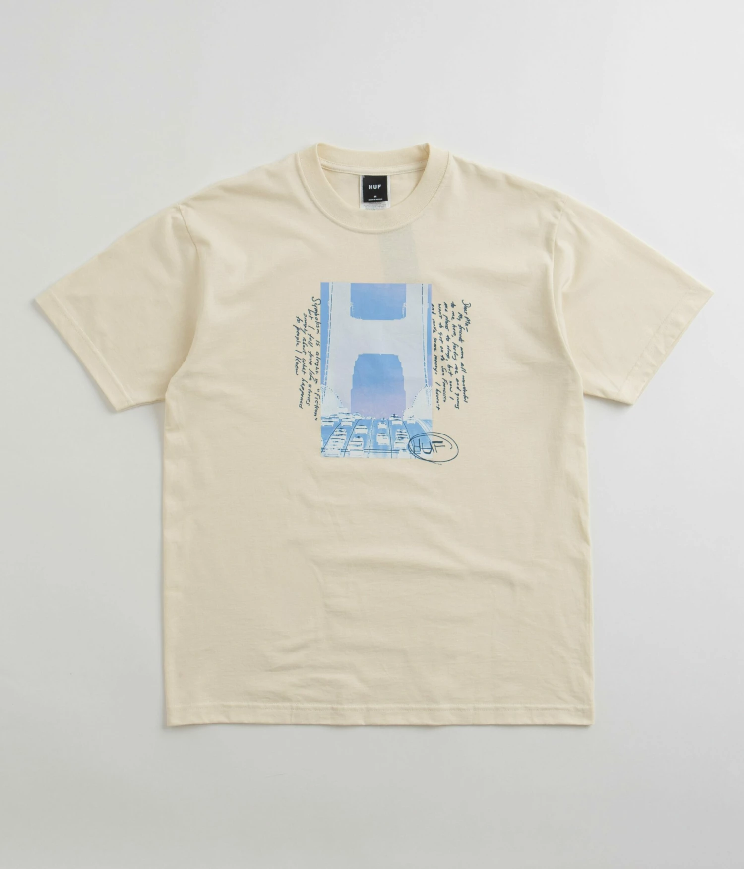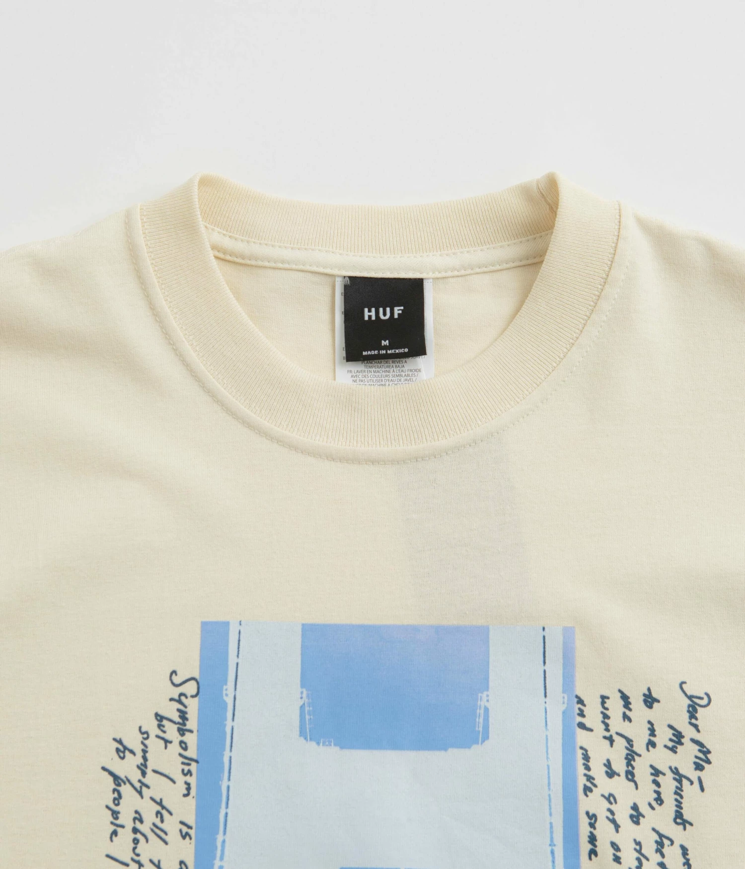 HUF Bridges T-Shirt in Bone. Part of the brand’s latest release, this regular fitting HUF t-shirt is designed with a classic crew collar and a reinforced hem. Made from 100% cotton jersey and finished in a shade of beige with a screen printed H bridge chest graphic.
