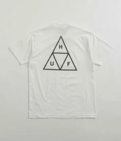 HUF Set T-Shirt in White. Part of the brand’s latest collection, this midweight HUF t-shirt is tailored to a forever style fitting from 100% cotton jersey. Featuring a classic crew collar and a straight cut hem, this white HUF t-shirt is finished with a screen printed ‘HUF’ triple triangle logo across both the left chest and reverse.