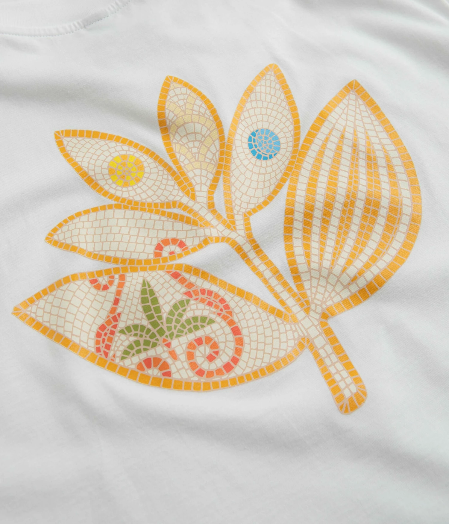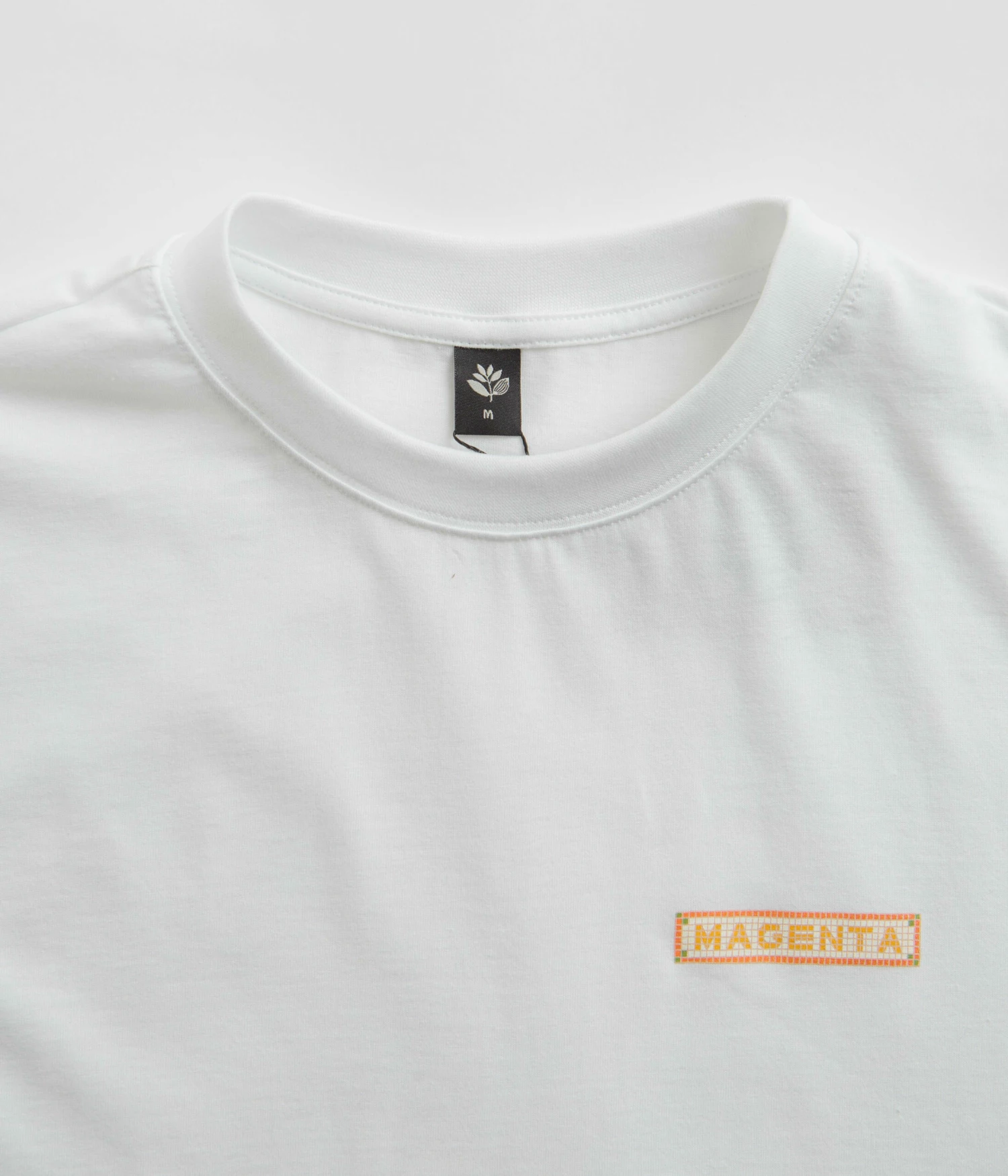 Magenta Mosaic T-Shirt in White. Part of the brand’s latest release, this regular fitting Magenta t-shirt is made from 100% cotton. Featuring a flexible rib knit collar and a straight cut hem, this white Magenta t-shirt is finished with printed front and rear graphics.