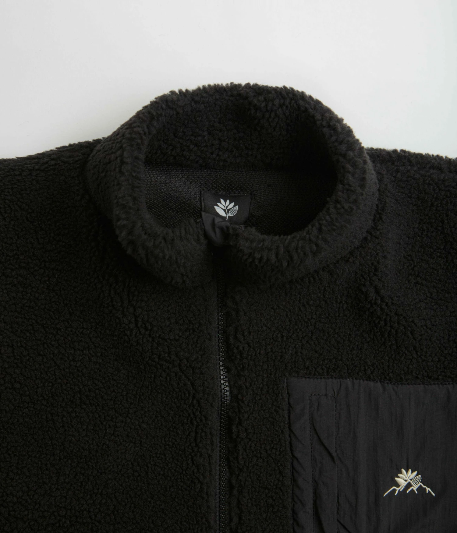 Magenta MTN 3/4 High Neck Fleece in Black. Made from 100% Sherpa fleece, this regular fitting Magenta fleece is designed with a YKK Vislon zipper fastening and a toggle-cord hem. Featuring dropped shoulders, ribbed cuffs and two zipped side pockets, this black Magenta fleece is finished with a contrasting nylon chest pocket with embroidered logo branding.