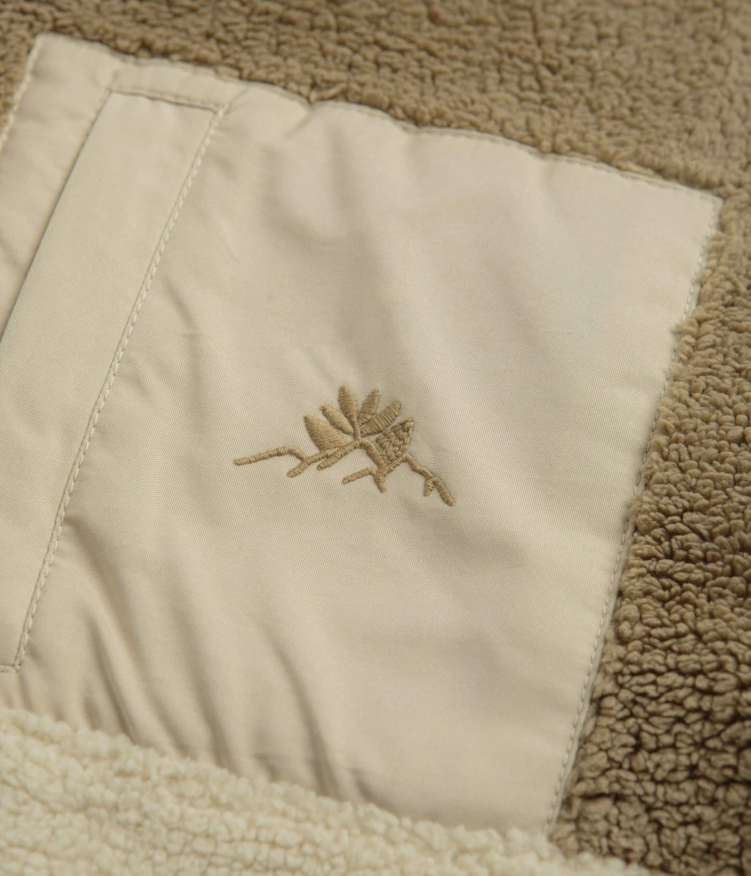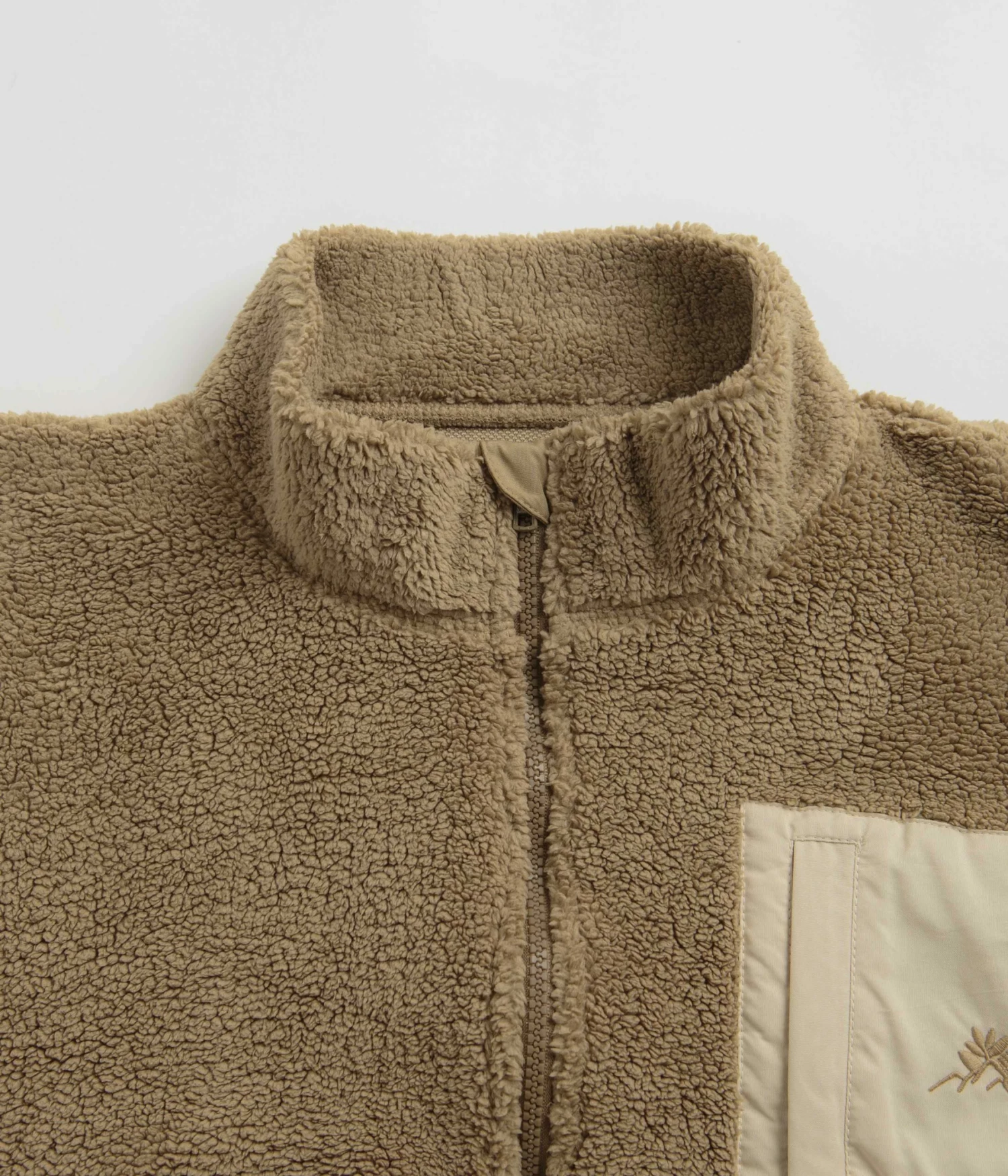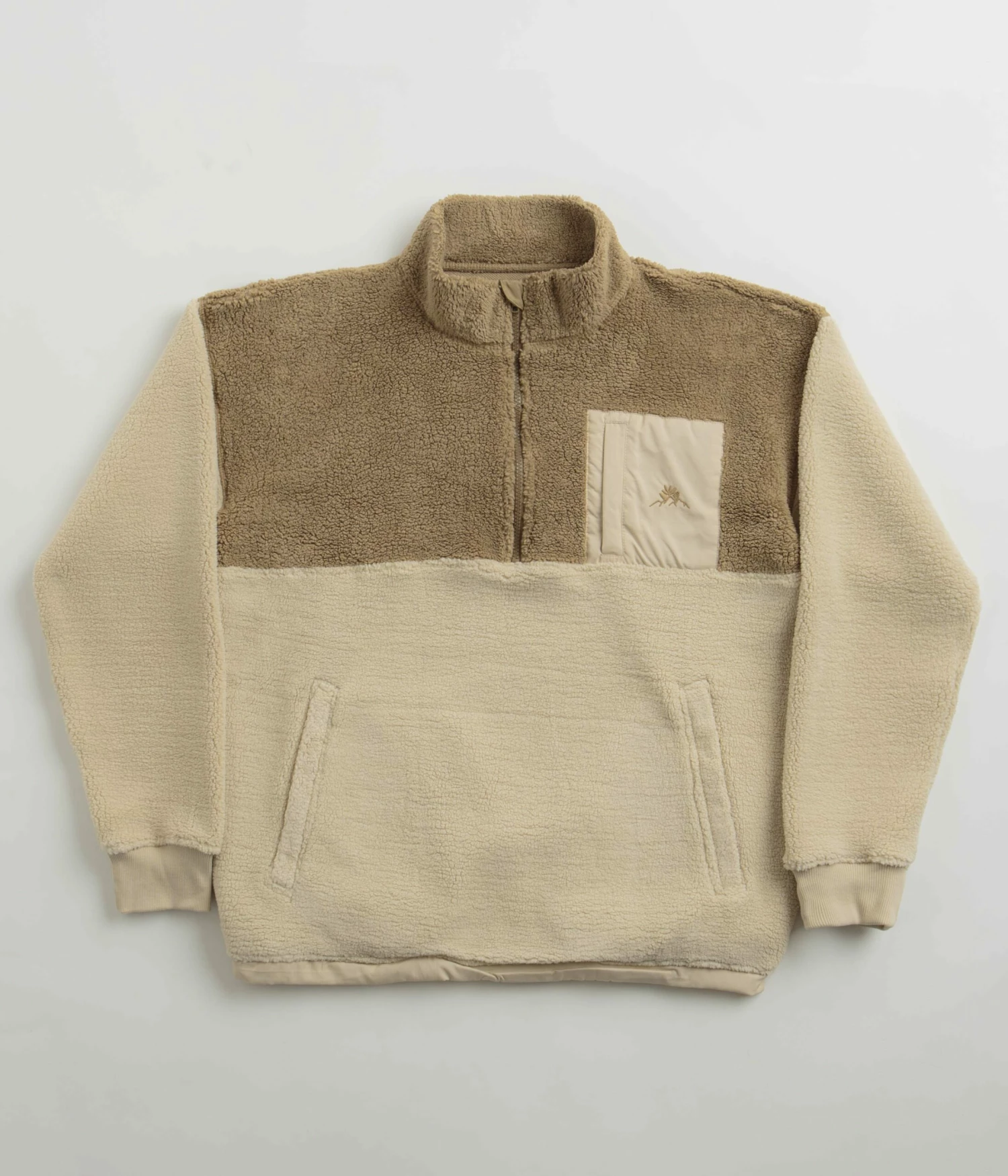 Magenta MTN 3/4 High Neck Fleece in Dark and Light Beige. Arriving as part of the brand’s latest release, this regular fitting Magenta fleece is made from 100% Sherpa fleece. Featuring dropped shoulders, a YKK Vislon zipper, ribbed cuffs and an adjustable toggle-cord hem, this khaki Magenta fleece is finished with two zipped waist pockets, a contrast nylon chest pocket and with embroidered logo branding.