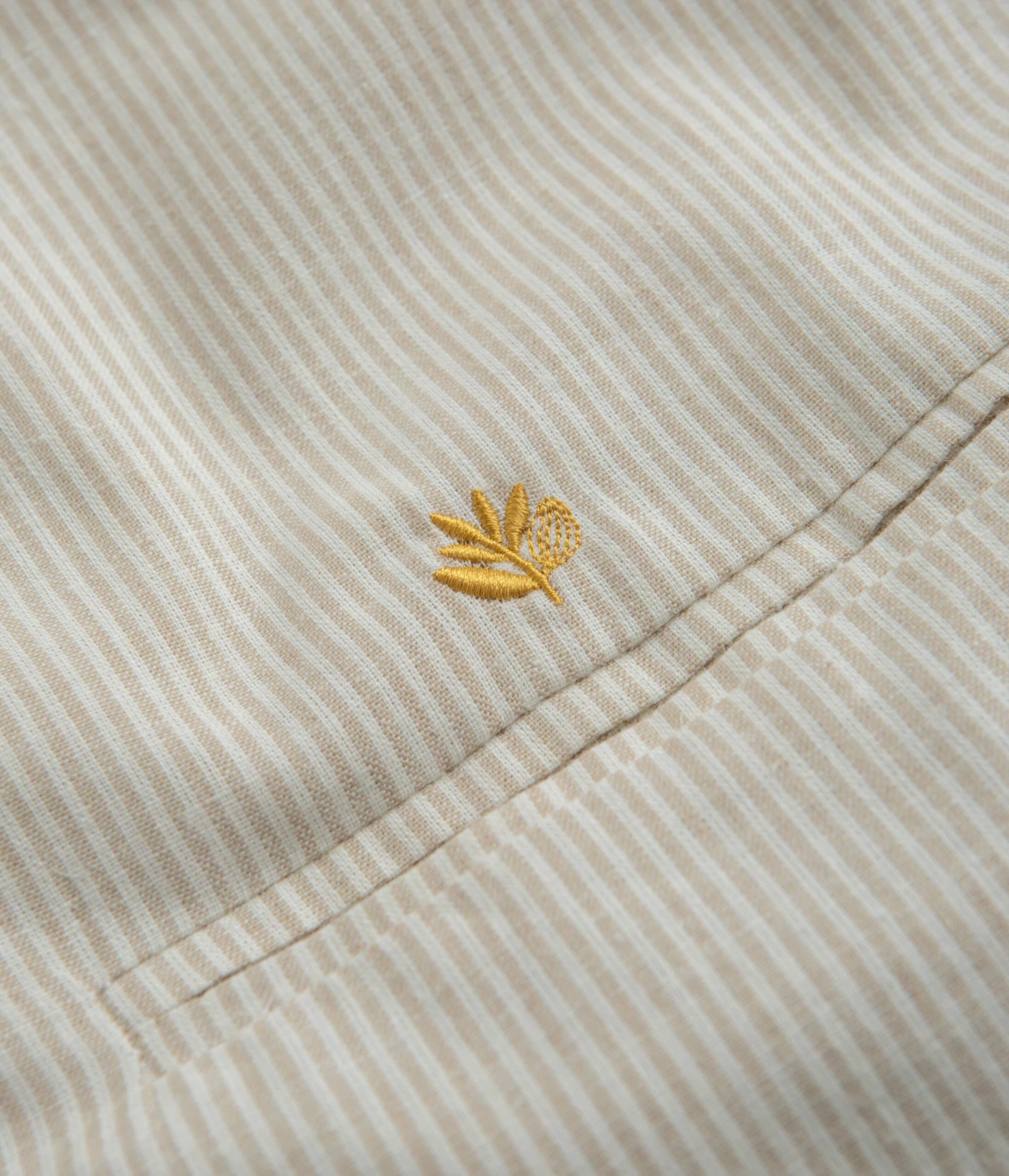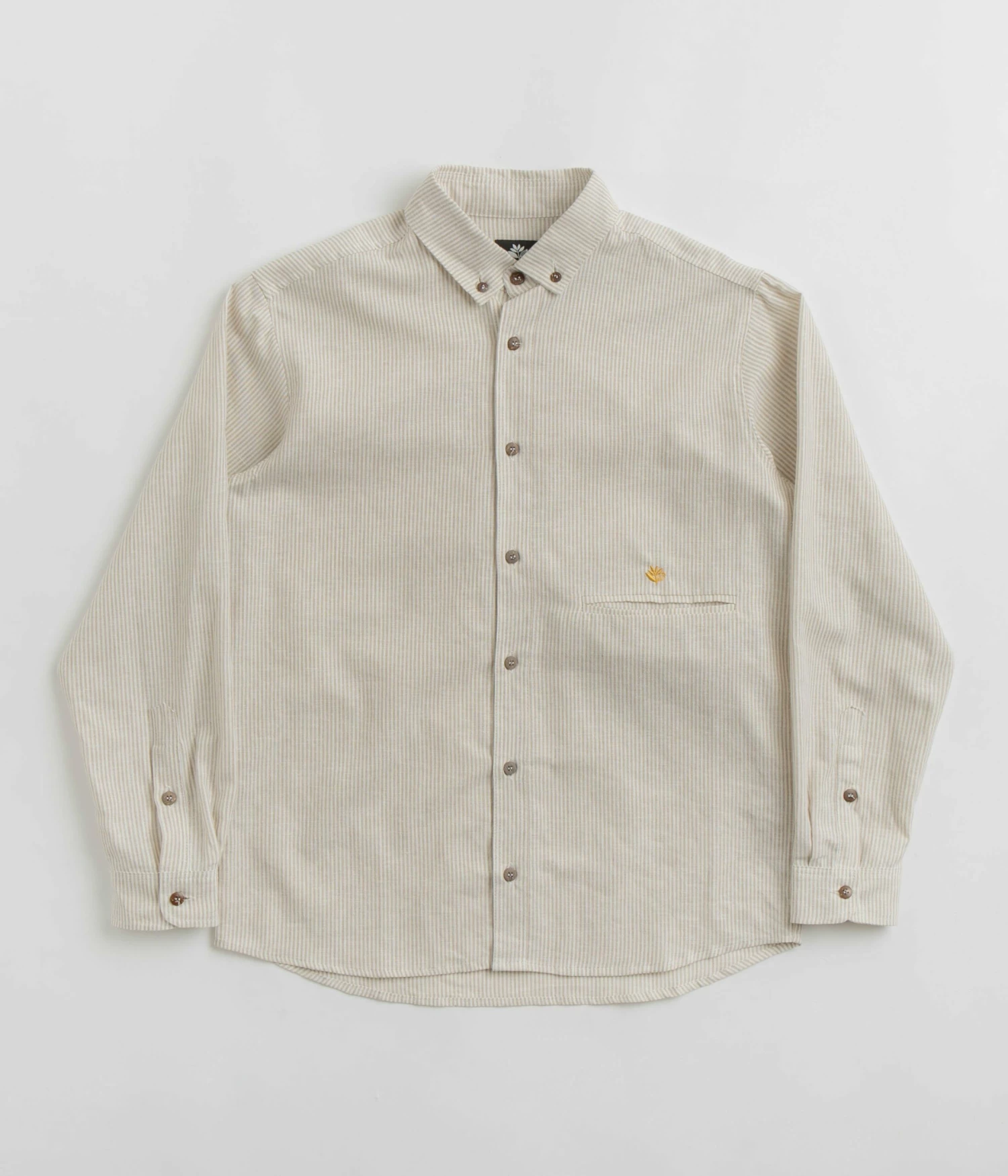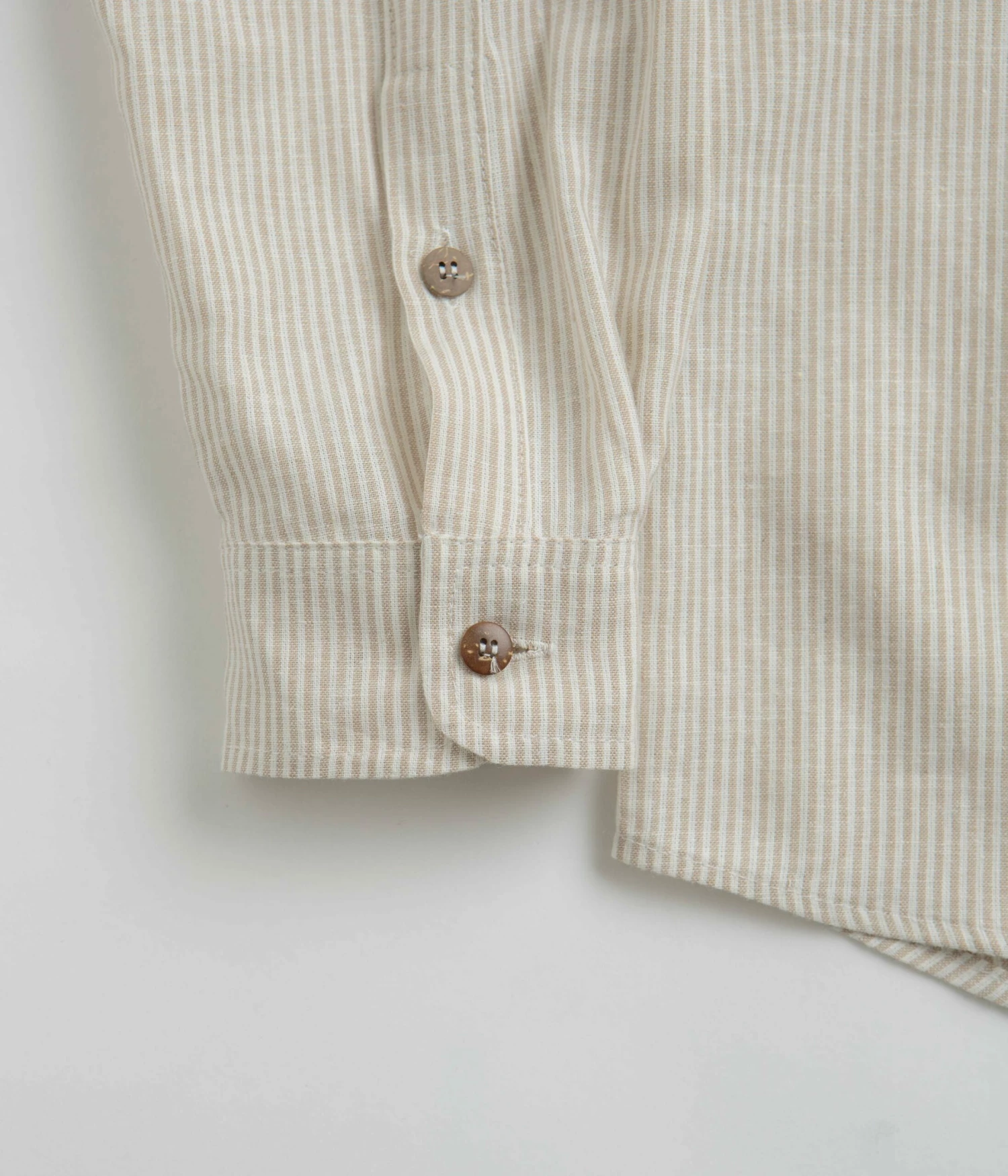 Magenta Oxford Striped Shirt in Beige. Tailored to a regular fitting from 100% Oxford cotton, this Magenta shirt is designed with a button-down collar and a full length button fastening. Featuring a curved hem and adjustable cuffs, this beige Magenta shirt is finished with a welt chest pocket, an embroidered logo, woven flag label branding and with coconut hardware.