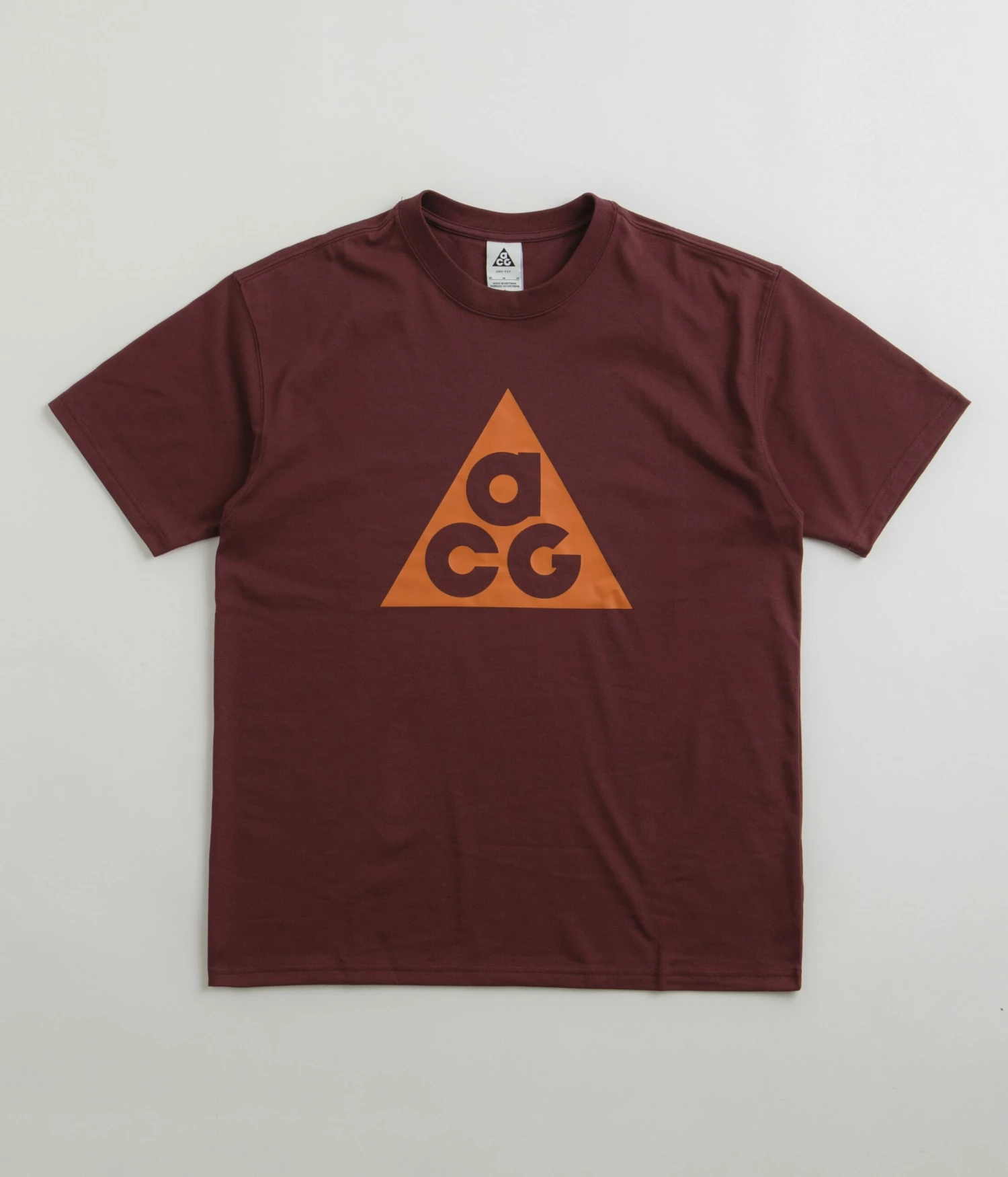 Nike ACG HBR T-Shirt in Night Maroon. Part of the brand’s latest release, this loose fitting Nike ACG t-shirt is made from 100% sustainable fabrics. Featuring a rib knit crew collar, dropped shoulders and sweat-wicking technology, this maroon red Nike ACG t-shirt is finished with a large printed ACG chest graphic.