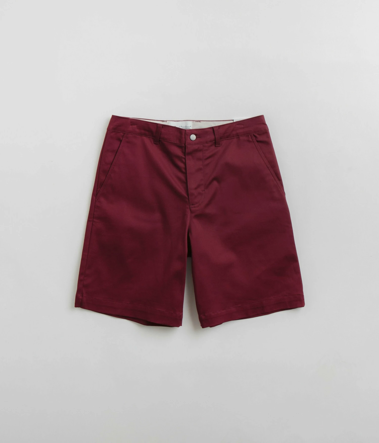 Nike SB El Chino Shorts in Dark Team Red. Cut to knee length from a cotton-spandex blend, these Nike SB chino shorts are designed with a classic belt loop waist and an inner drawstring fastening. Featuring a single button secured zipper fly, two side pockets and two rear pockets, these red Nike SB shorts are finished with an additional rear utility pocket and with woven flag label branding.