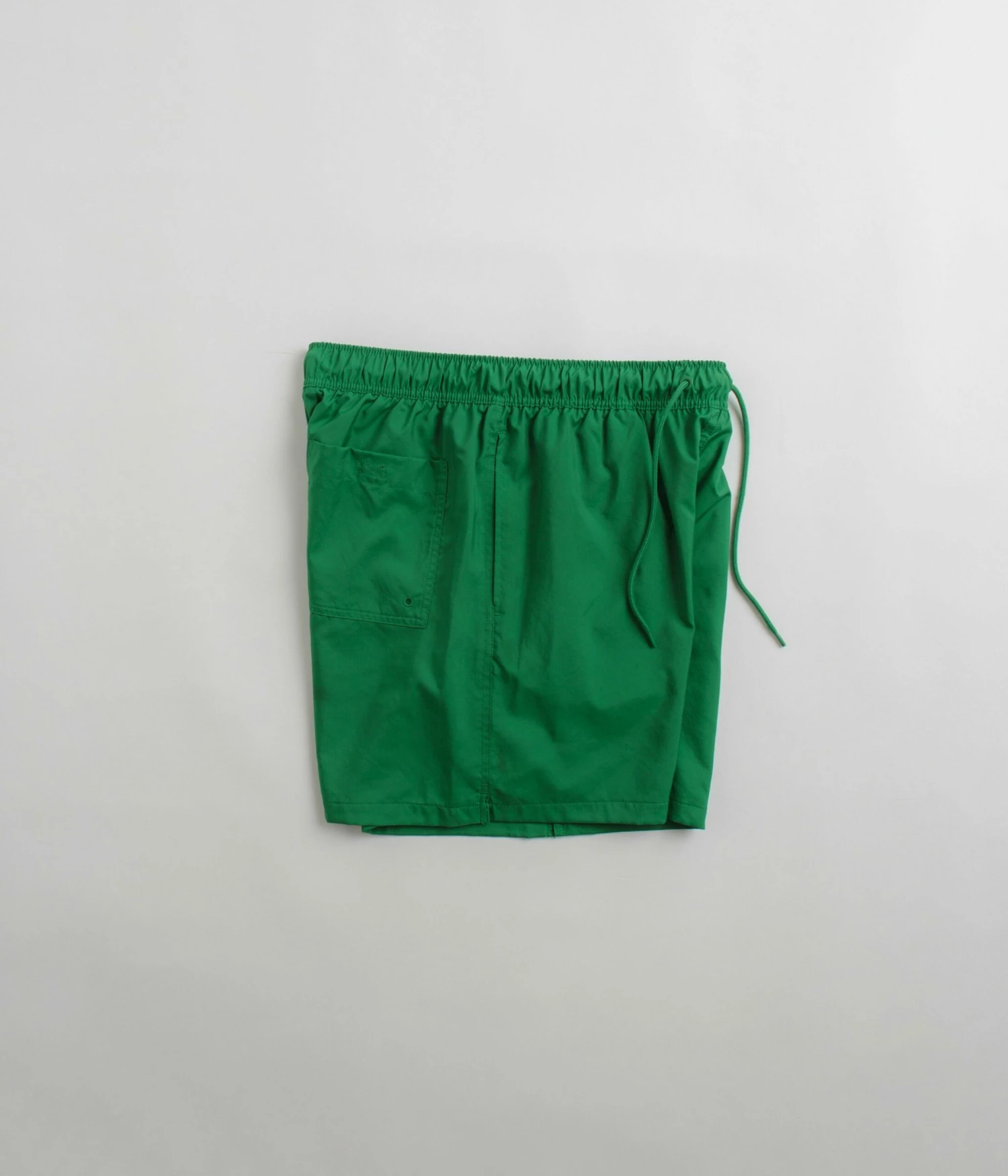 Nike Club Woven Flow Shorts in Malachite and White. Cut to an above-knee length from 100% polyester, these mesh lined Nike shorts are designed with an elasticated drawstring waist. Featuring two side pockets, a single rear pocket and with embroidered logo branding, these green Nike shorts are finished with tonal stitched seams.