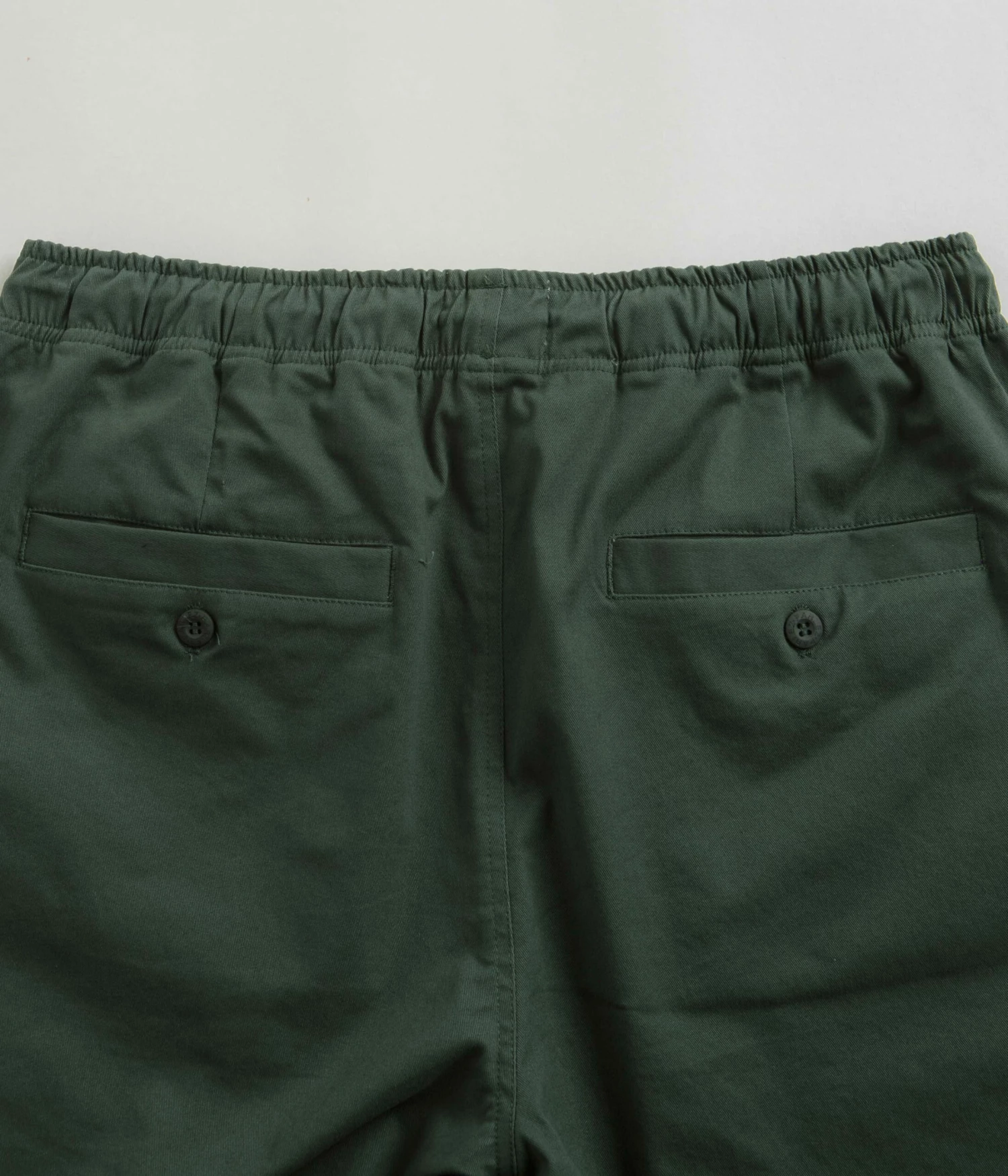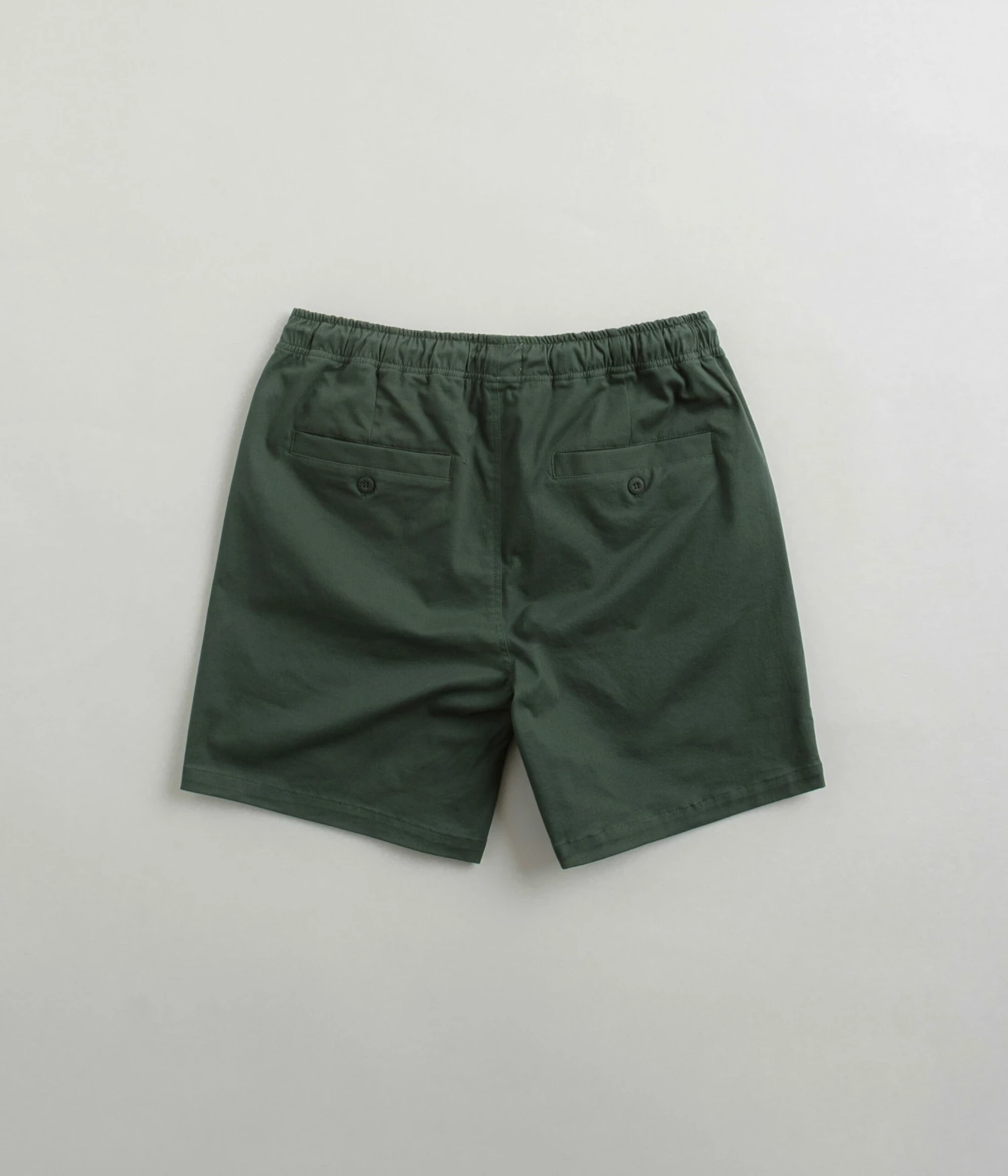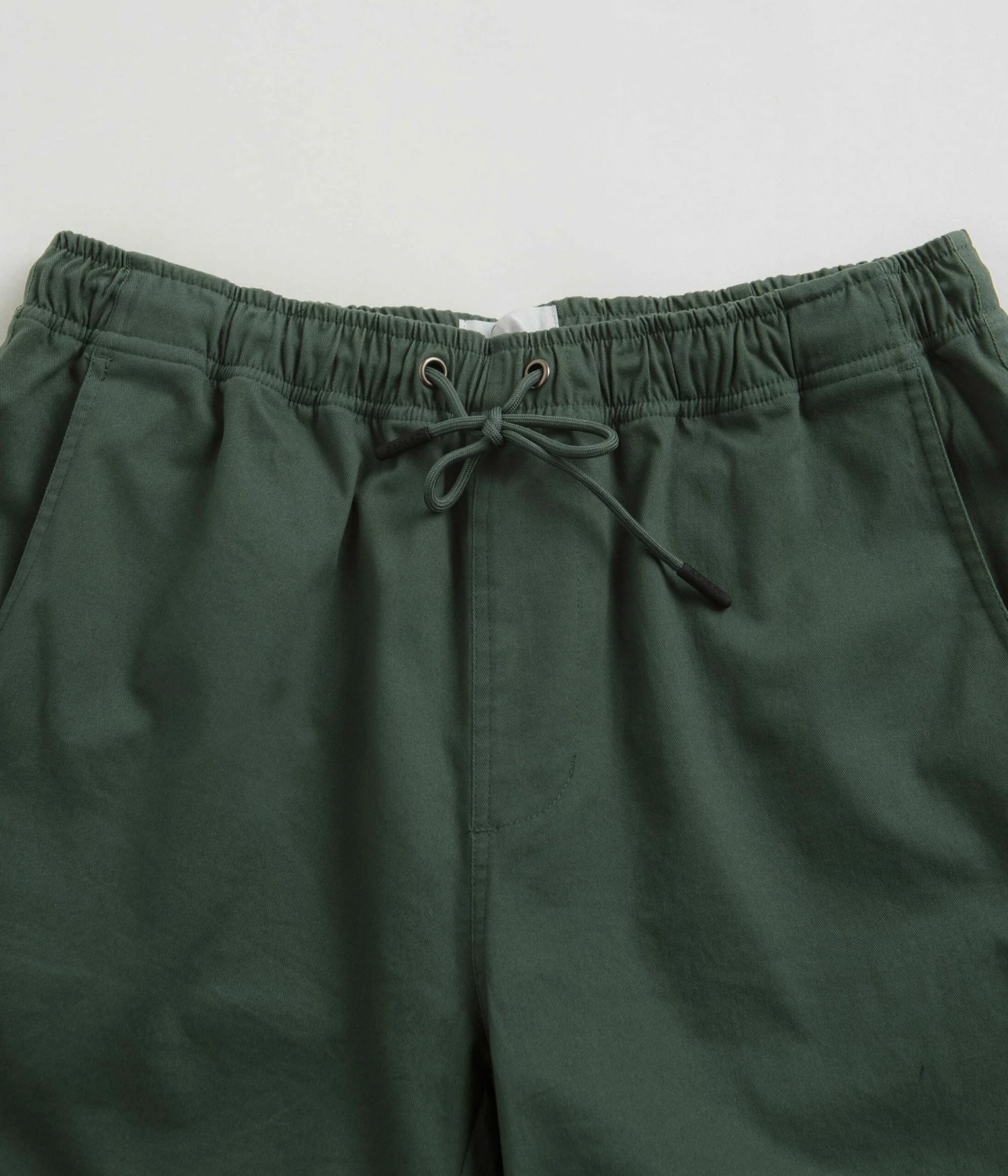Parlez Vandra Shorts in Deep Teal. Regular fitting with an elasticated waistband, these Parlez shorts are made from a cotton-spandex blend. Featuring a woven elastic waistband with branded metal aglets, these teal green Parlez shorts are finished with two front pockets, a rear pocket and embroidered logo branding.