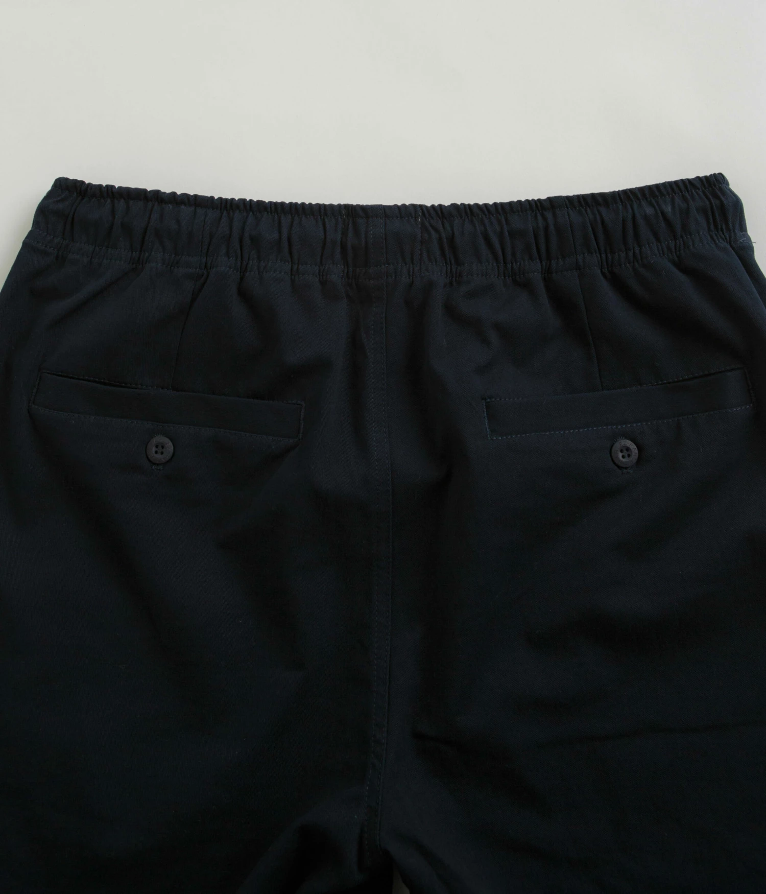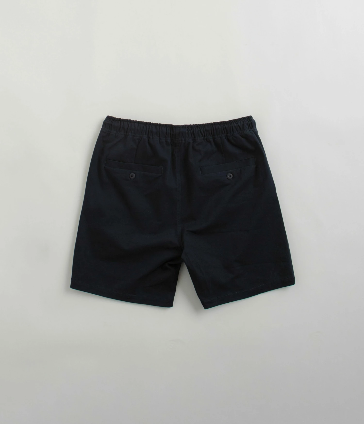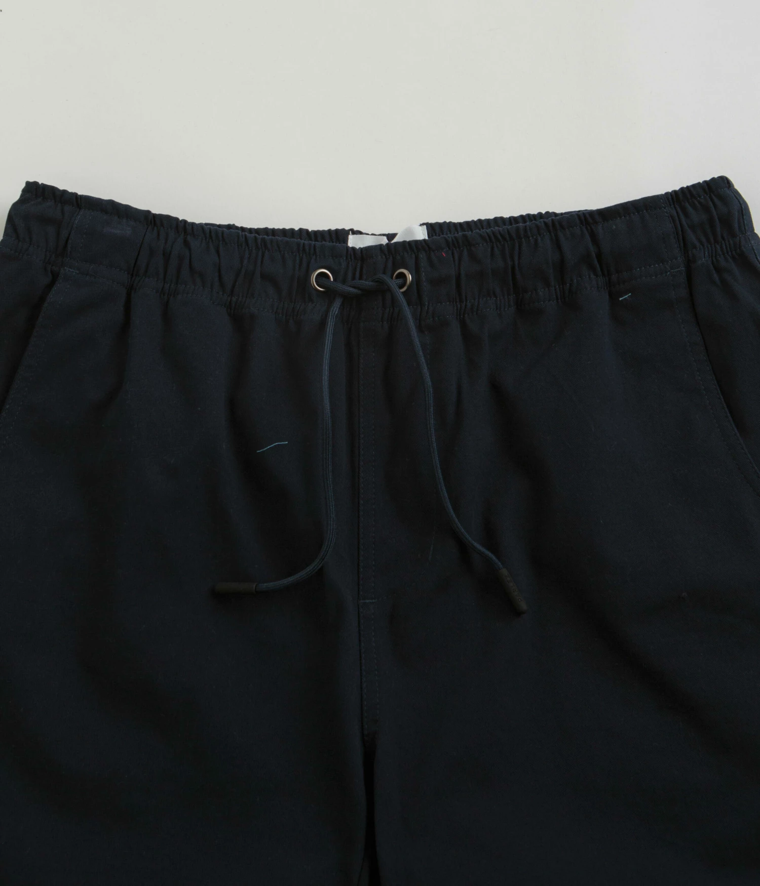 Parlez Vandra Shorts in Navy and Black. Made from a cotton-elastane blend with metal lace aglets, these above-knee Parlez shorts are tailored to a regular fitting. Featuring an elasticated waist and tonal stitched seams, these navy Parlez shorts are finished with two side pockets, a single rear pocket and with embroidered logo branding.