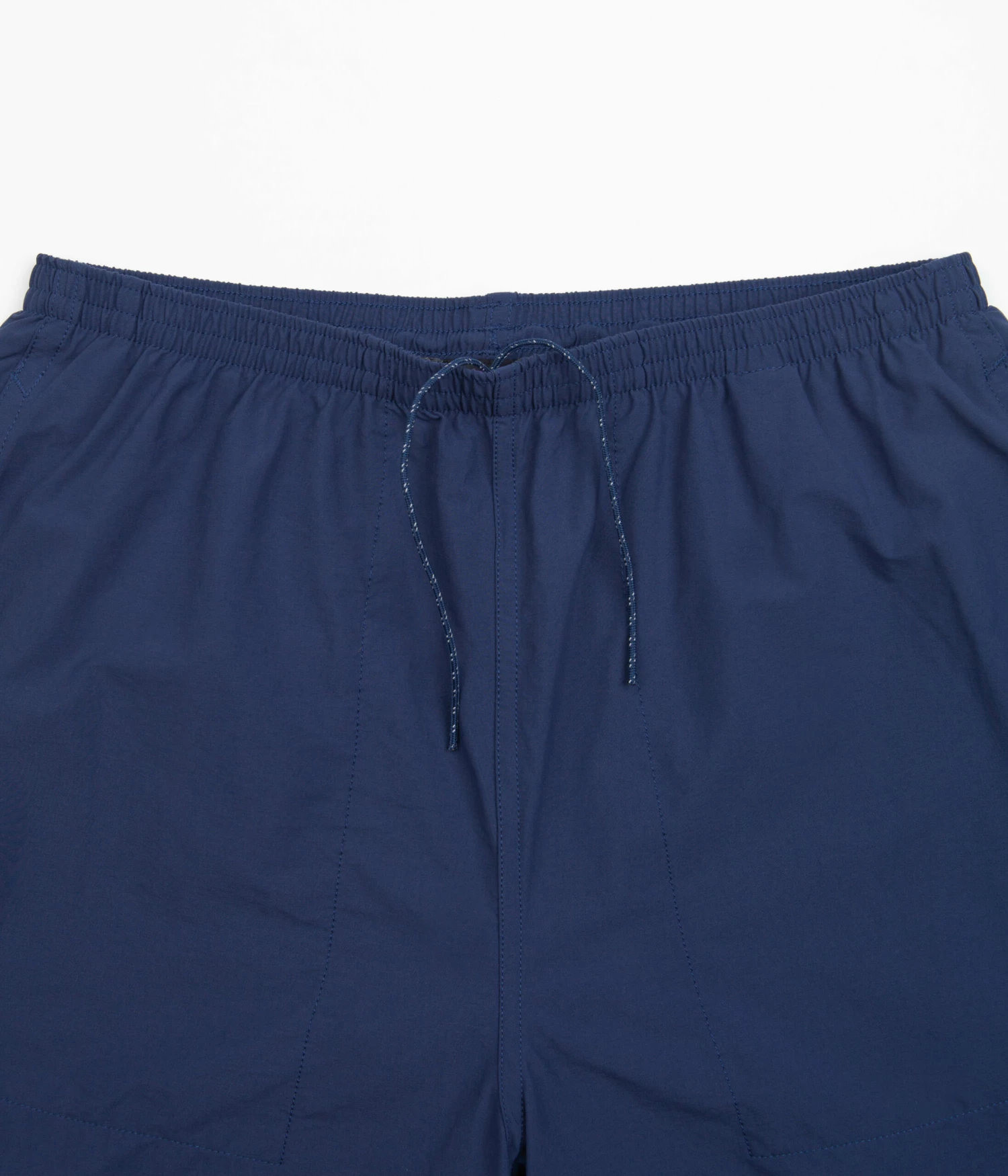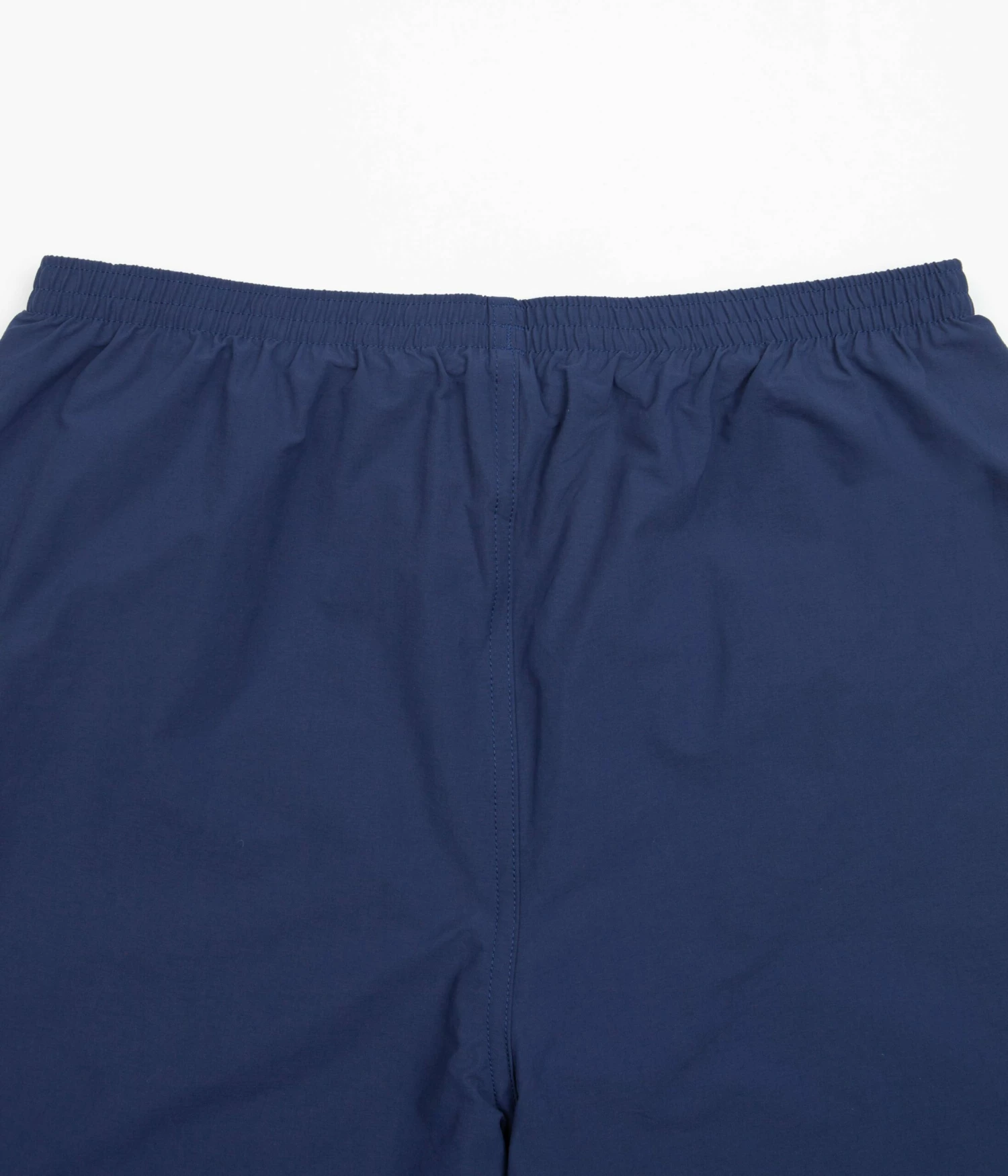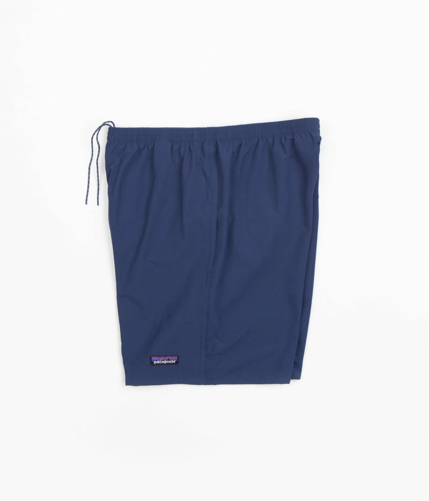 Patagonia Baggies Lights 6.5″ Shorts in Tidepool Blue. DWR coated and tailored to a relaxed fitting, this colour block Patagonia shorts are made from a nylon-elastane blend. Featuring a woven elastic waistband, an internal drawstring and a 6.5” inseam, these DWR coated blue Patagonia shorts are finished with two side pockets, a rear pocket and with an embroidered P-6 flag label sewn above the left cuff.