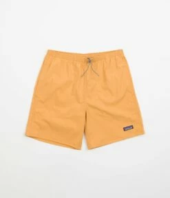 Patagonia Baggies Lights Shorts NetPlus® in Cloudberry Orange. Crafted from 100% NetPlus® 96% post consumer recycled nylon faille and tailored to a slim fit, these DWR coated Patagonia baggies shorts are styled in a colour block shade of bright orange. Featuring a 6.5” inseam, a woven elastic waistband, internal drawstring adjusters and a quick drying mesh liner, these above-knee Patagonia shorts are finished with two vertical front pockets and with an embroidered P-6 flag label sewn above the left leg cuff.