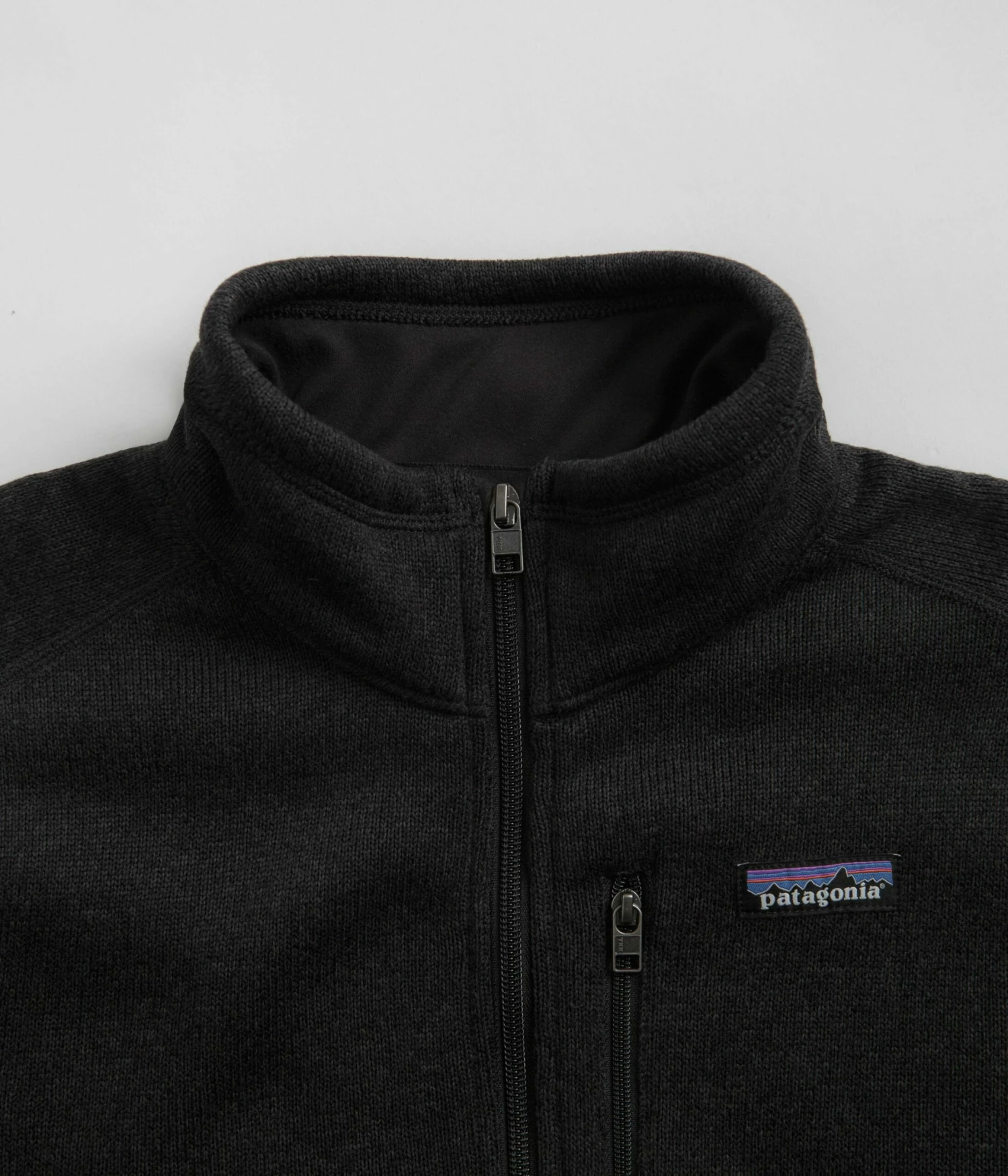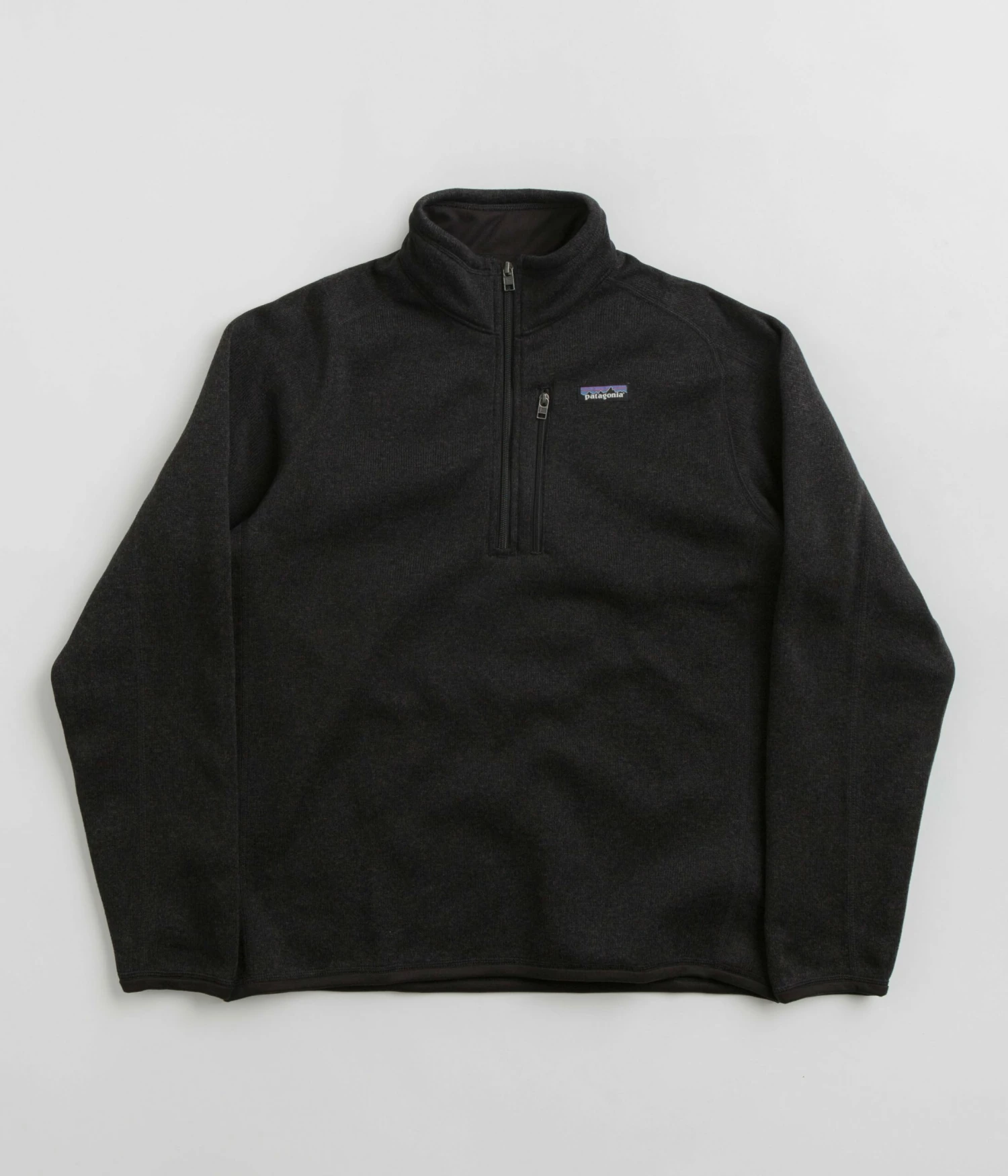 Patagonia Better Sweater 1/4 Zip Sweatshirt in Black. Tailored to a regular fitting from 100% recycled polyester fleece, this heathered Patagonia sweater is designed with a quarter-length zipper fastening with raglan sleeves and a zip-through collar. Featuring reinforced cuffs and a flat seam construction, this black Patagonia sweater is finished with a single zippered chest pocket and with woven flag label branding.