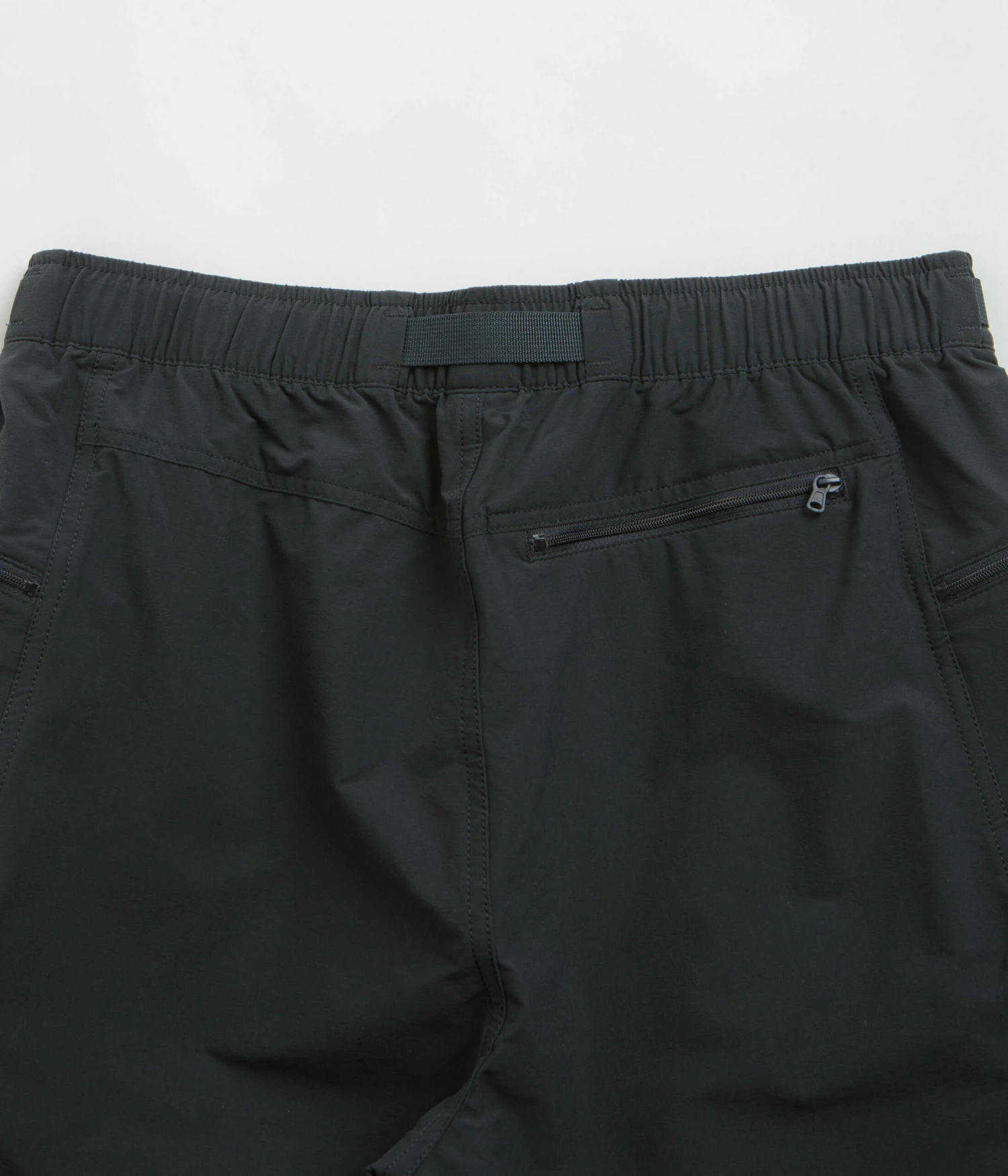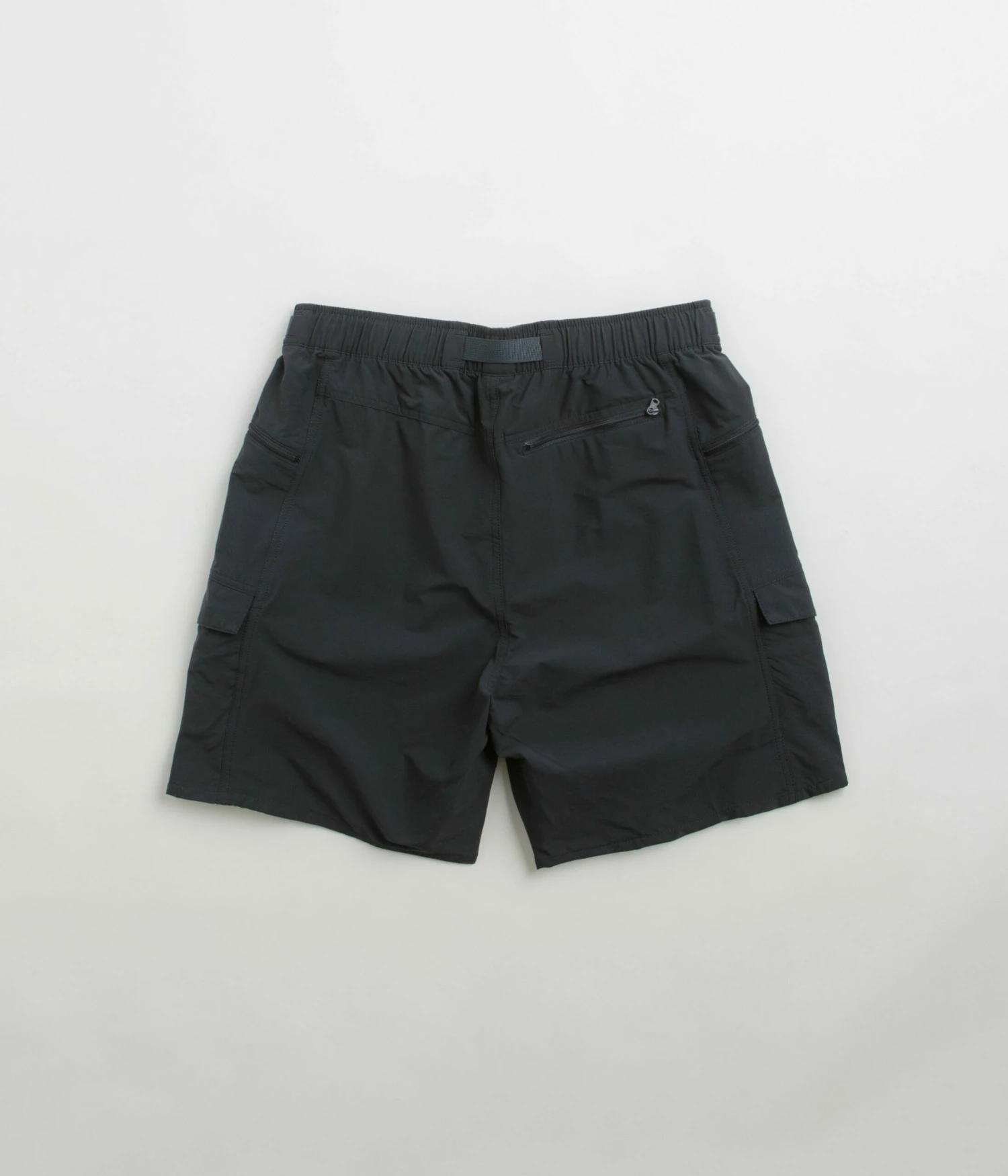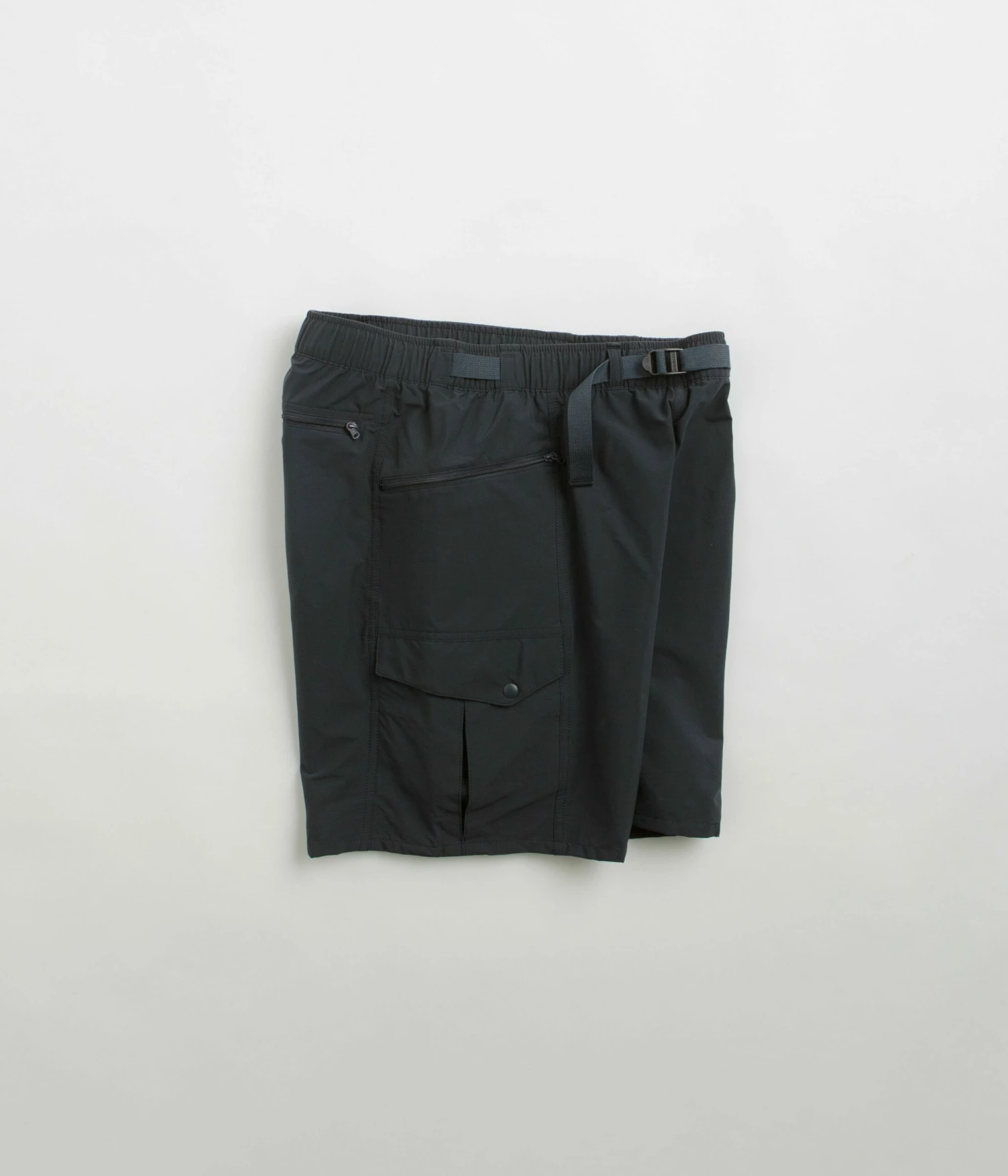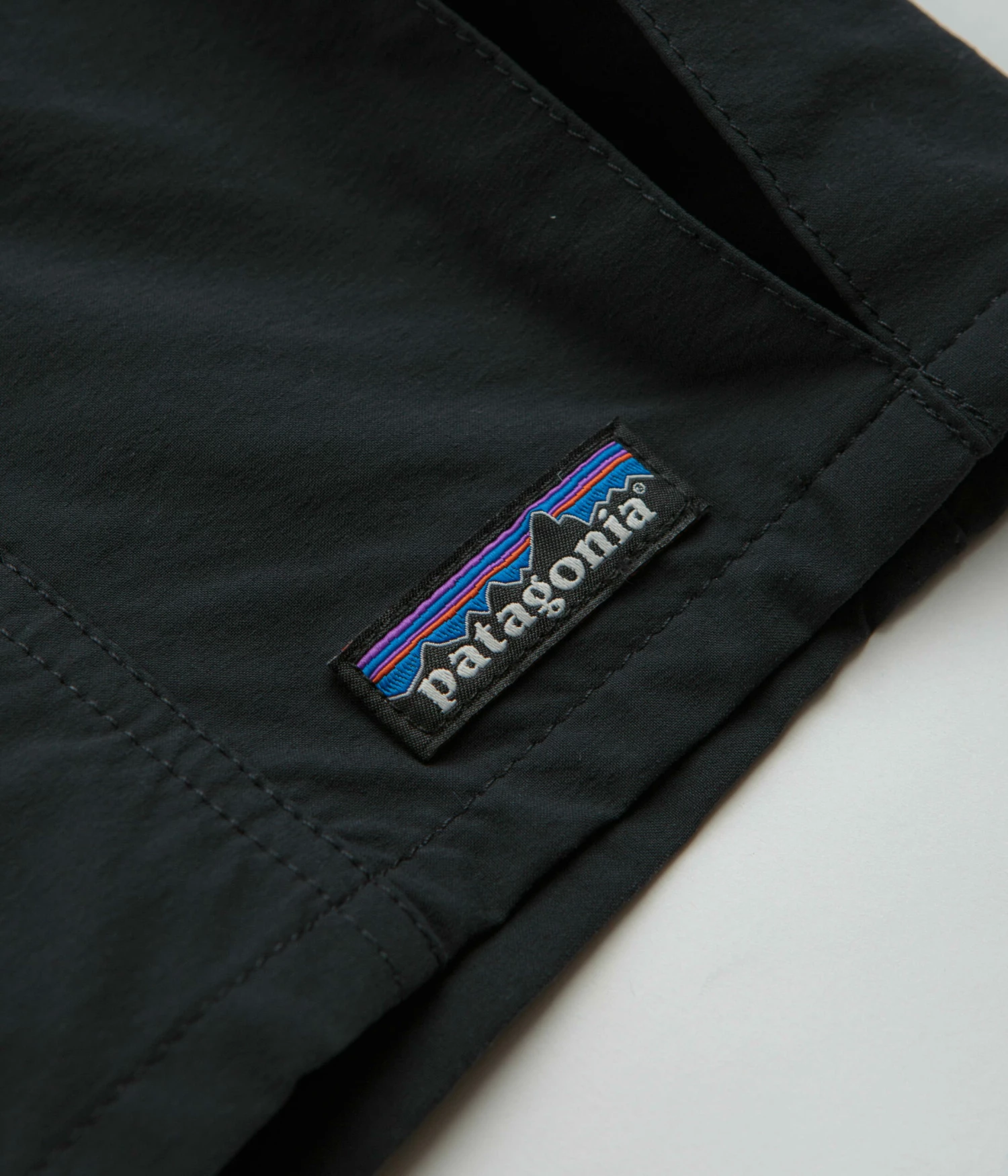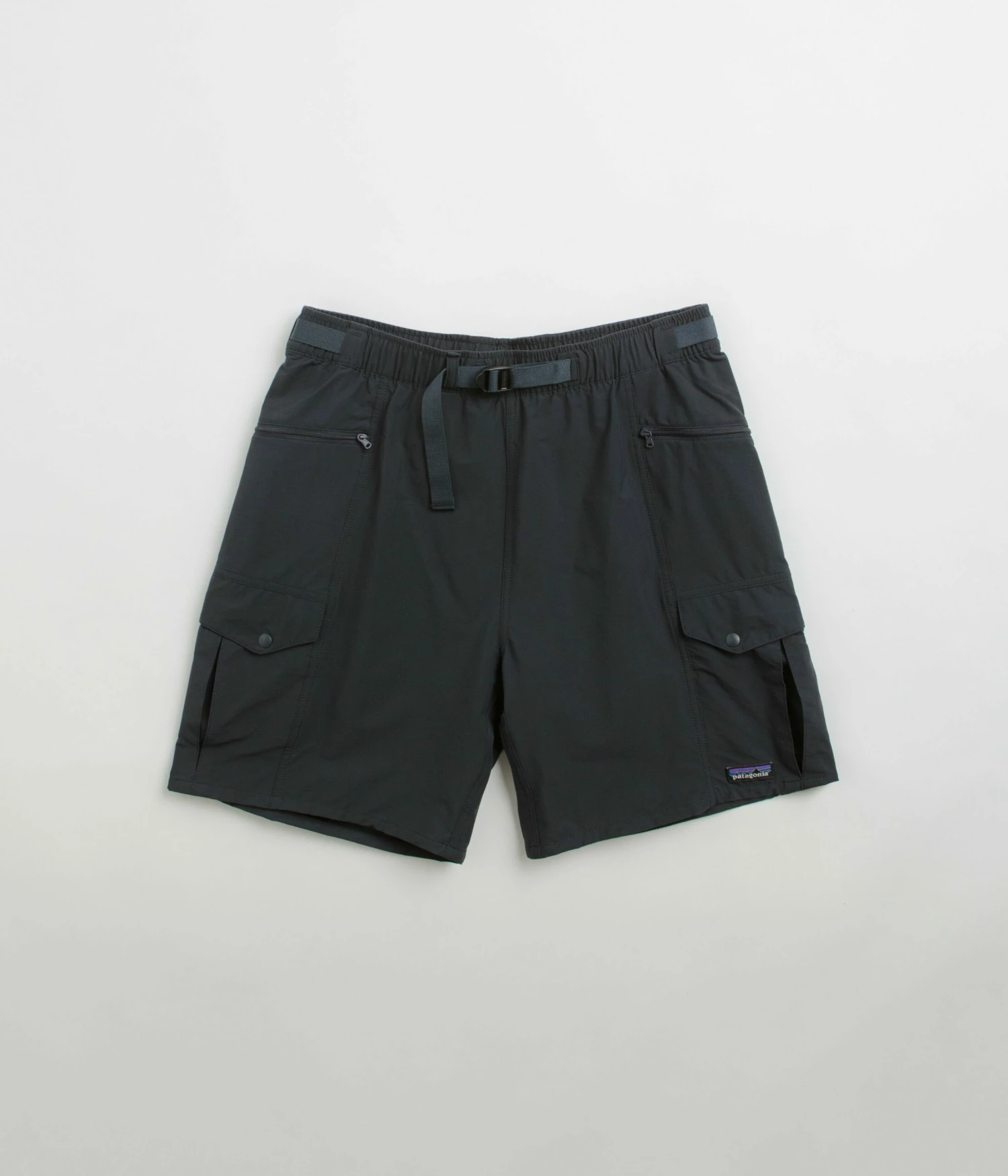 Patagonia Outdoor Everyday 7″ Shorts in Pitch Blue. Regular fitting and made from a nylon-elastane blend, these quick-drying Patagonia shorts are designed with an elasticated waist and an adjustable webbing belt. Featuring an unlined inner, flat-felled seams and a 7” inseam, these blue Patagonia shorts are finished with two zippered side pockets, a zippered rear pocket, additional cargo pockets and with P-6 flag label branding.