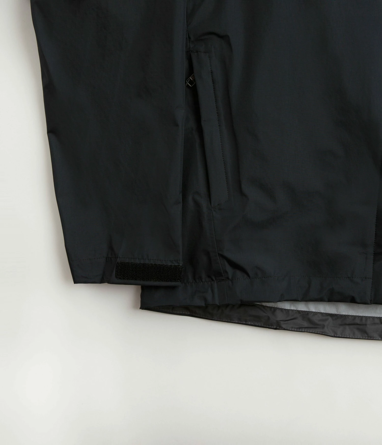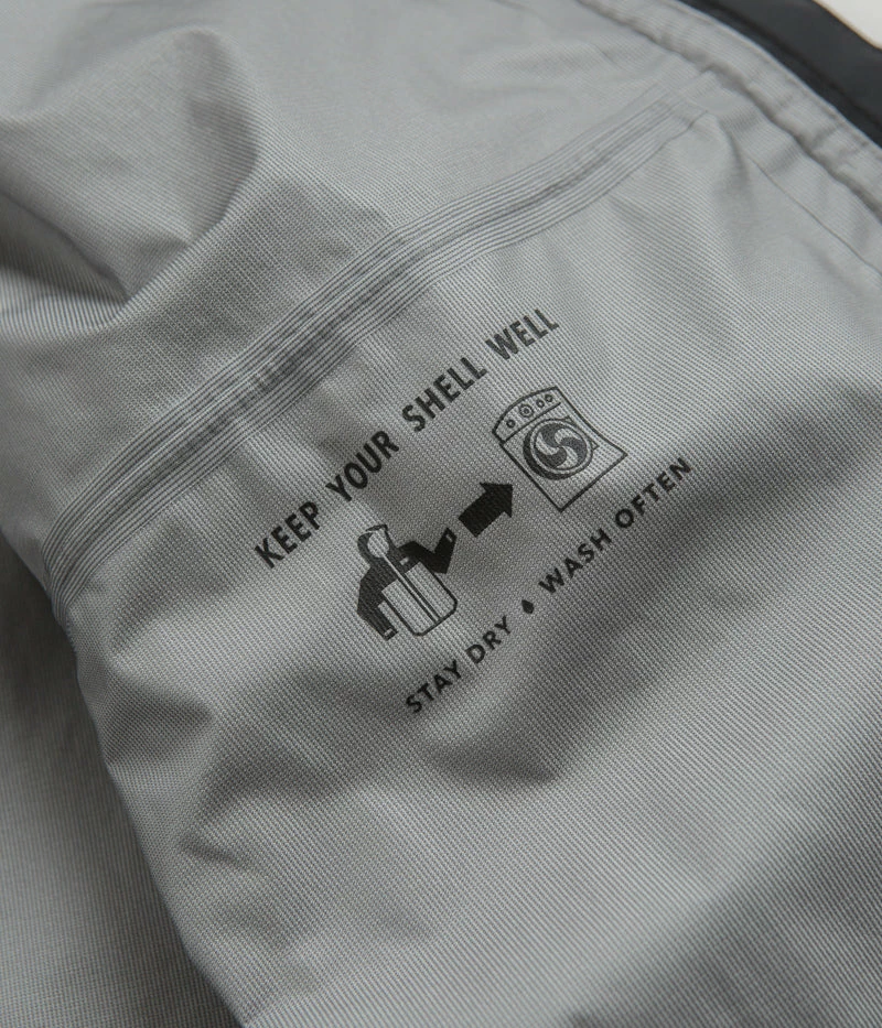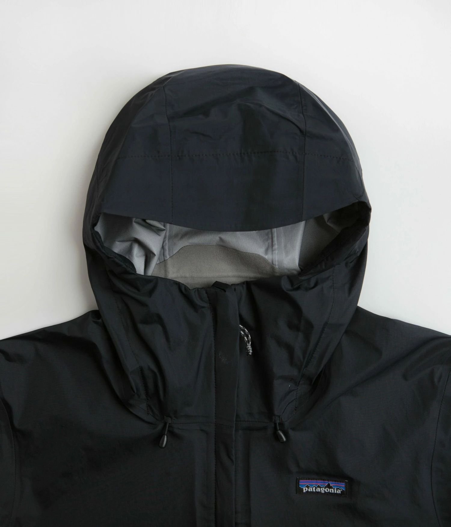 Patagonia Torrentshell 3L Jacket in Black. Designed with a H2No® Performance Standard shell made from 100% recycled nylon ripstop with a DWR coated exterior and a PU membrane, this regular fitting Patagonia jacket is Fair Trade Certified™ with a micro-fleece lined neck. Featuring a full length zipper fastening, zippered underarm vents, an adjustable drawcord hem and self-storing functionality, this black Patagonia torrentshell jacket is finished with an adjustable two-way hood, two zippered front pockets, adjustable cuffs and with woven P-6 flag label branding.