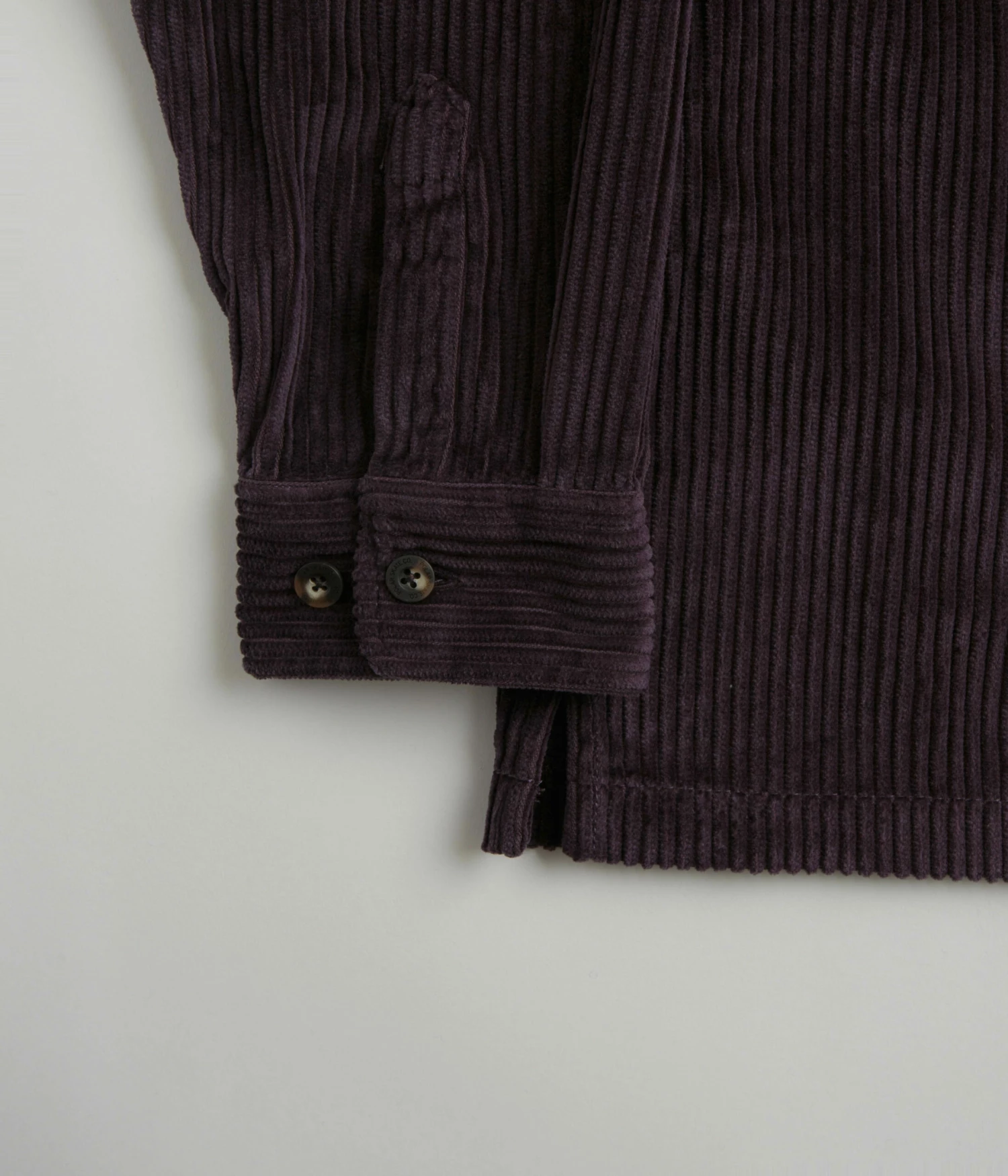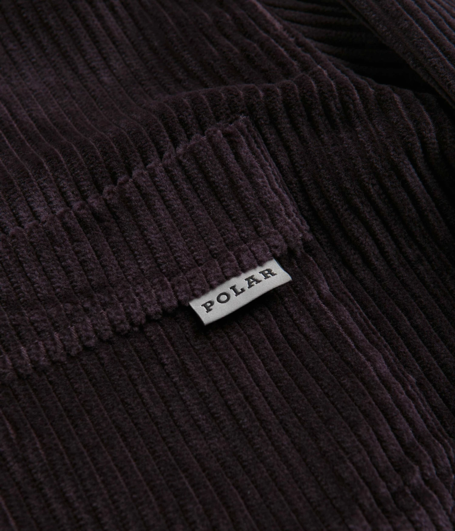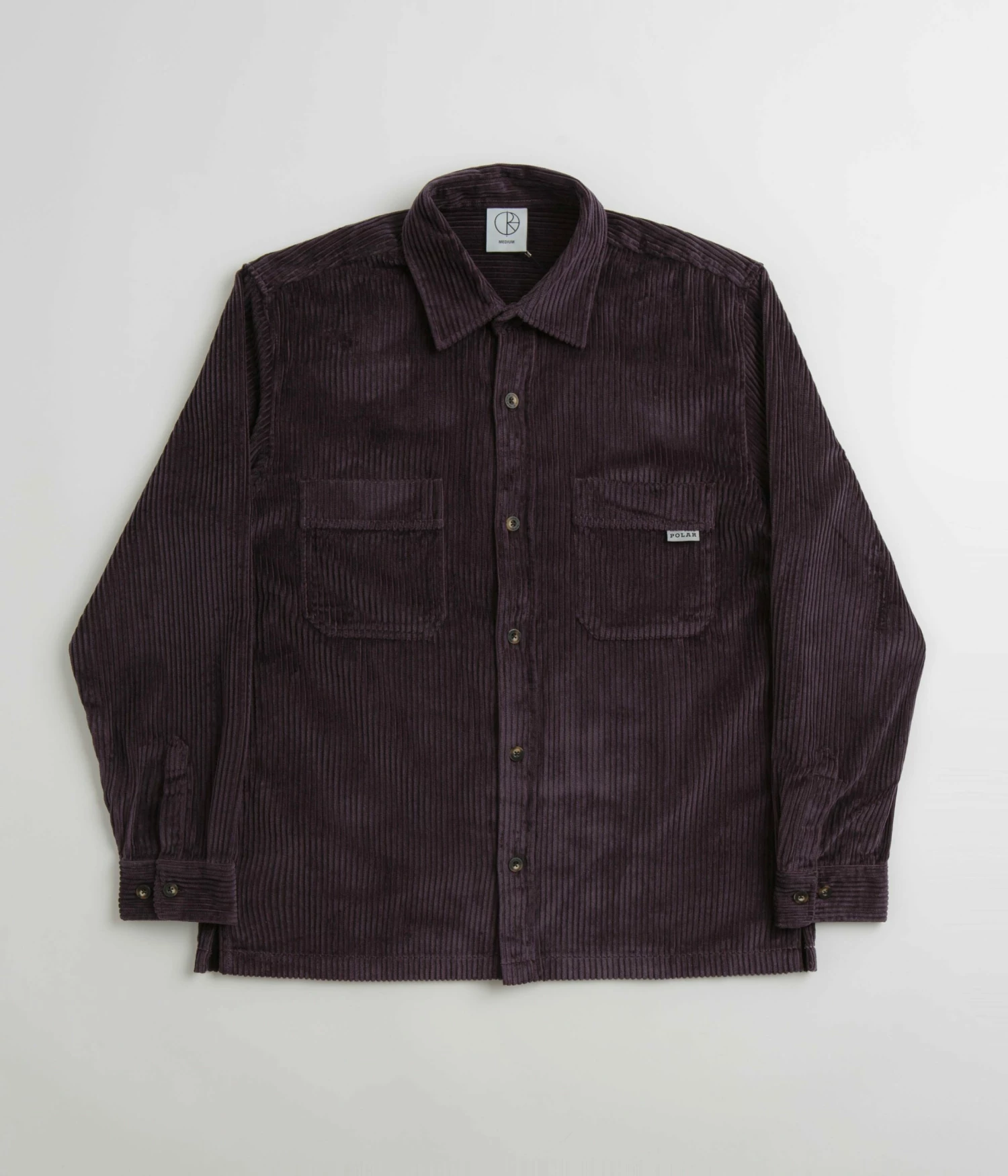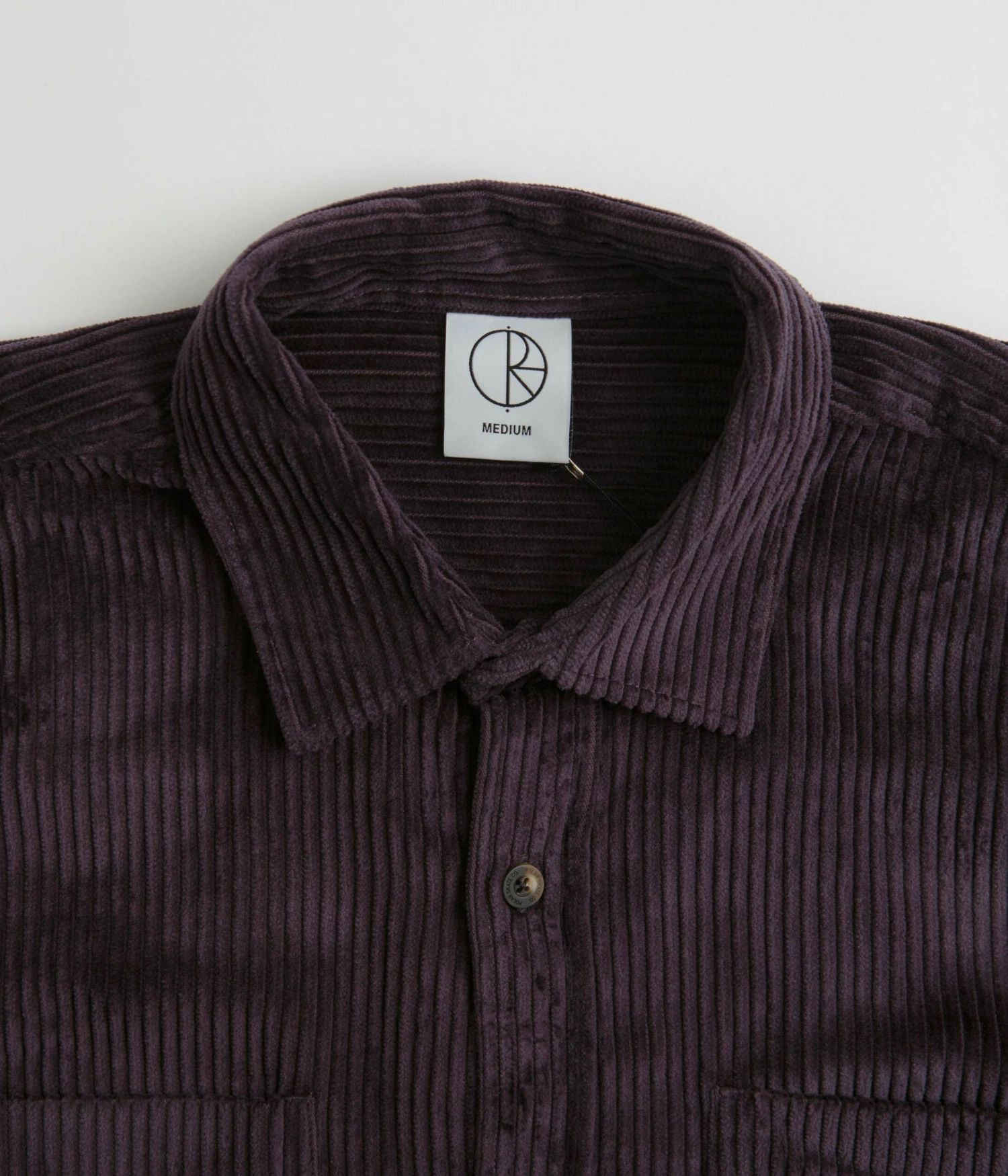 Polar Cord Shirt in Dark Violet. Workwear inspired and tailored to a regular fitting, this Polar shirt is made from 100% cotton corduroy. Featuring a full length fastening, faux tortoise buttons and a 5-wale fabrication, this purple Polar shirt is finished with adjustable cuffs, two chest pockets and woven flag label branding.
