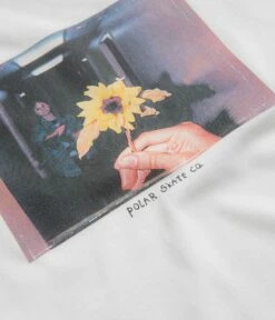 Polar Dead Flowers T-Shirt in White. Featuring custom artwork by Sirus F. Gahan, this new season Polar t-shirt is tailored to a regular fitting. Featuring a rib knit collar and a straight cut hem, this white Polar t-shirt is finished with a printed centre chest graphic.