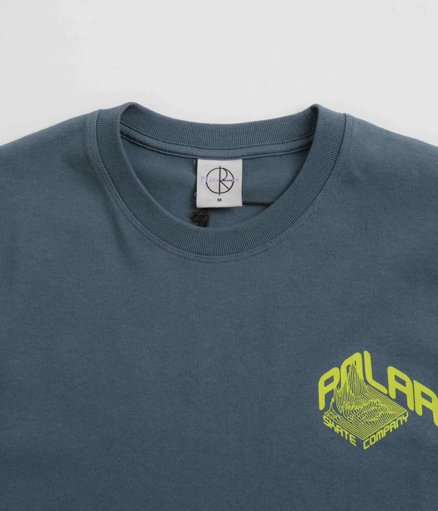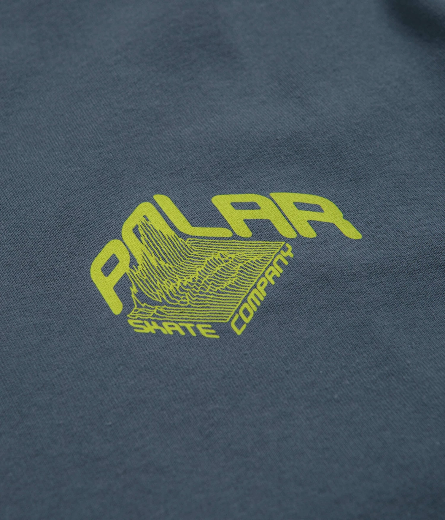 Polar Graph T-Shirt in Grey Blue. Arriving as part of the brand’s latest release, this regular fitting Polar t-shirt features custom artwork by Planet Luke. Styled with a classic crew collar and a reinforced hem, this grey blue Polar t-shirt is finished with a printed left chest graphic.
