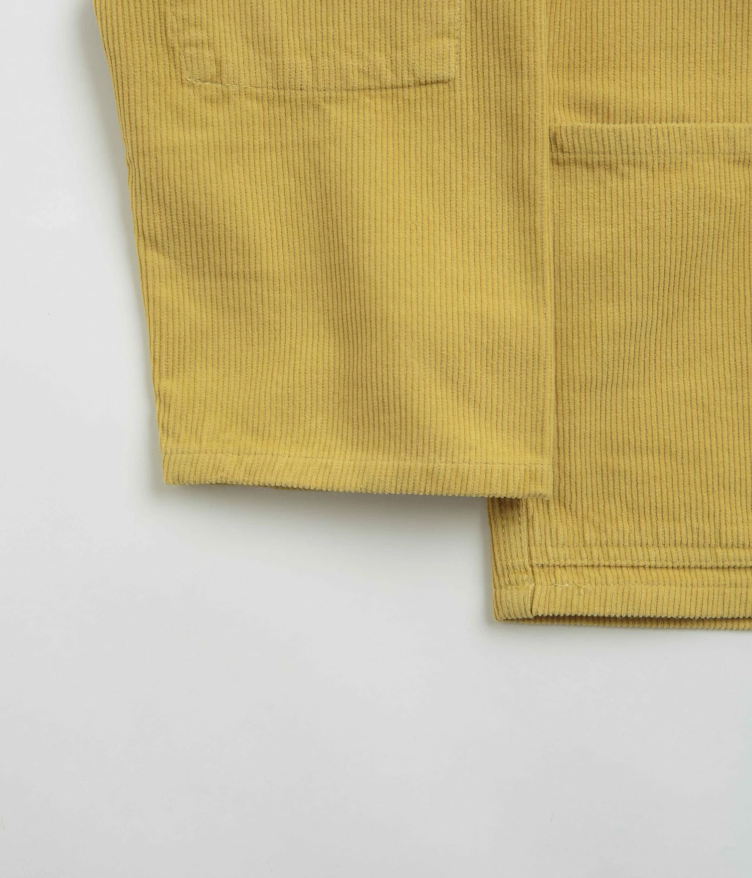 Uskees 3001 Cord Buttoned Overshirt in Citronella. Made from 100% organic cotton with an 11-wale corduroy construction, this boxy fitting Uskees overshirt is designed with a full length button fastening and a classic stand collar. Finished in a shade of yellow with reinforced elbow panels, two waist pockets and with a single left chest pocket.
