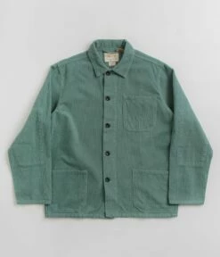 Uskees 3001 Cord Buttoned Overshirt in Eucalyptus. Made from 100% organic cotton with an 11-wale corduroy construction, this boxy fitting Uskees overshirt is designed with a fold-down collar and a full length button fastening. Featuring reinforced elbow patches and plant-based corozo hardware, this teal green Uskees shirt is finished with two waist pockets and with a single left chest pocket.