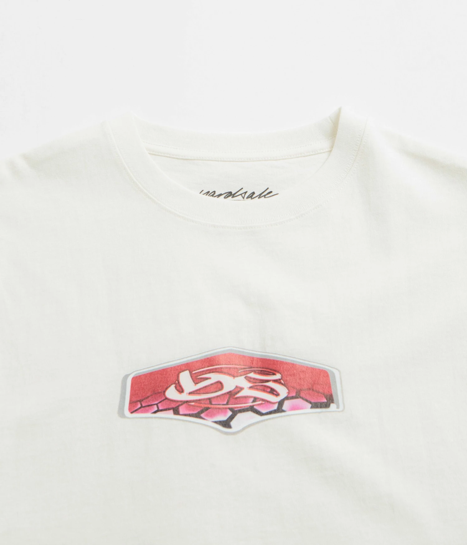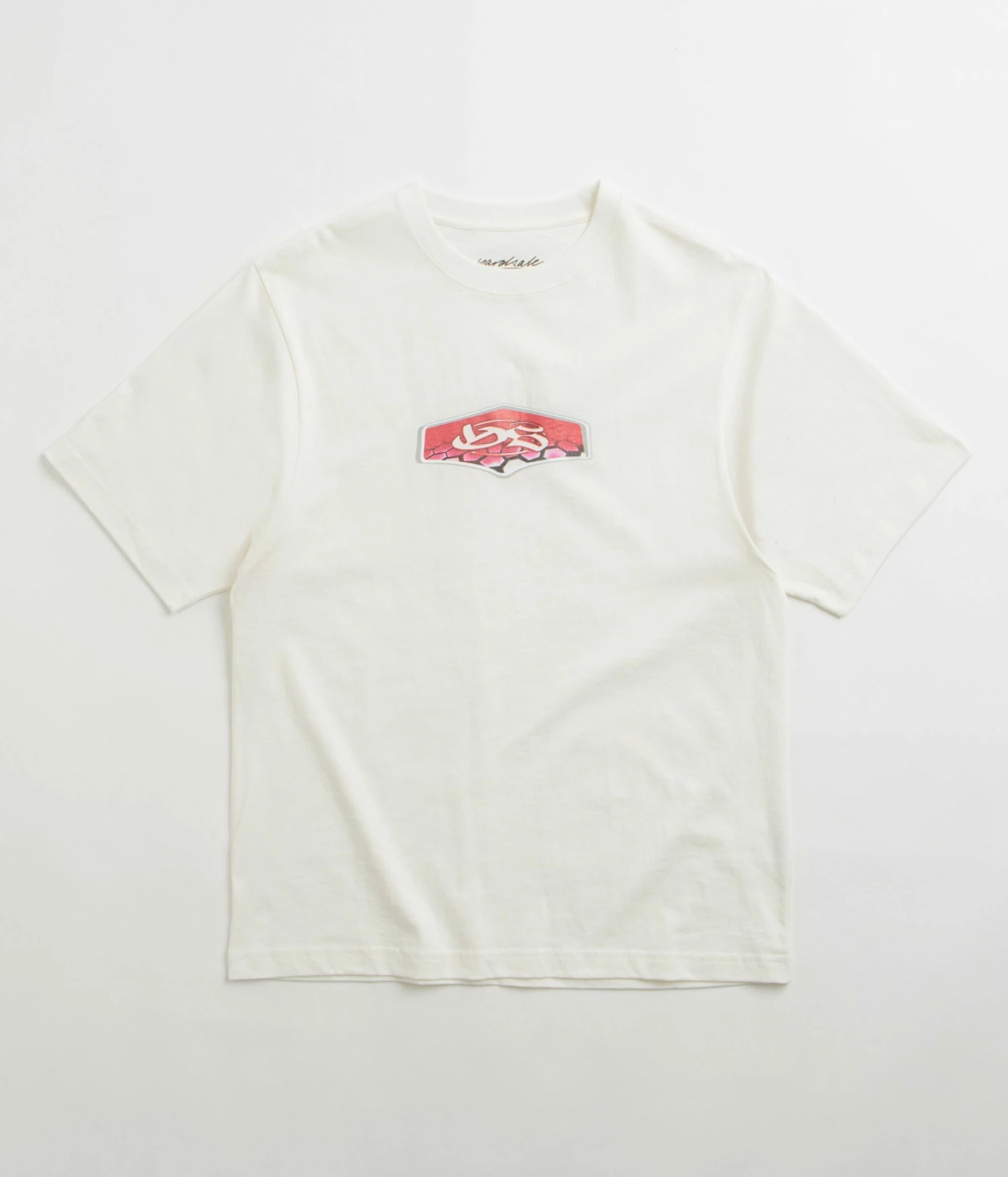 Yardsale Harmonize T-Shirt in White. Made from 100% cotton with a washed fabric construction, this regular fitting Yardsale t-shirt is designed with a rib knit collar and a straight cut hem. Finished in a shade of white with a screen printed centre chest graphic.